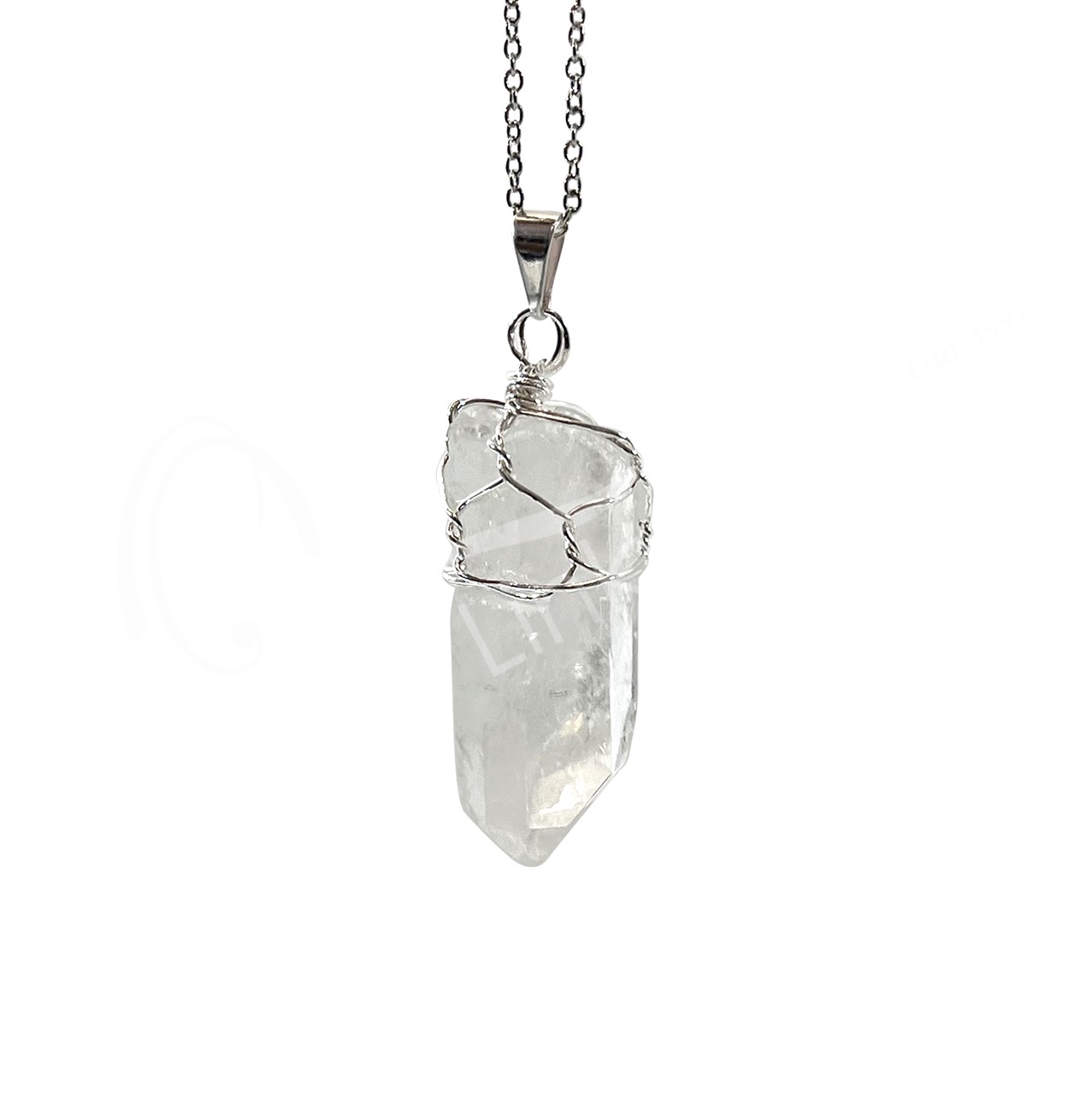 PENDANT – WIRE WRAP HALF CRYSTAL QUARTZ POINT 2-2.25″ L