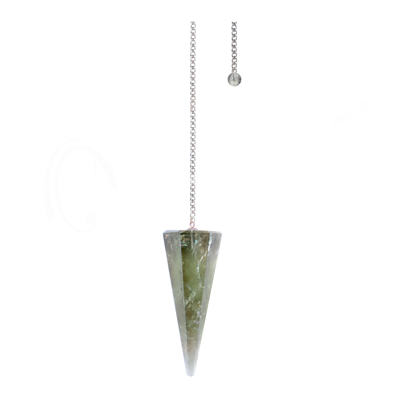 PENDULUM – HEXAGONAL PRASIOLITE PLAIN CHAIN 9″L