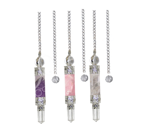 PENDULUM – WAND MIXED STONES PLAIN CHAIN 9″L