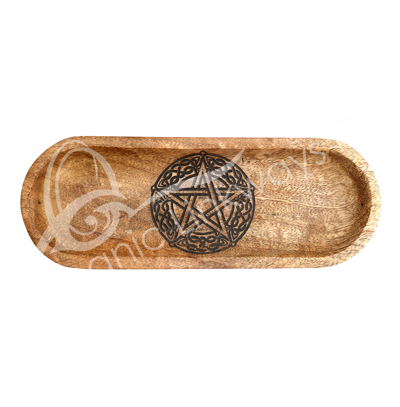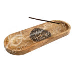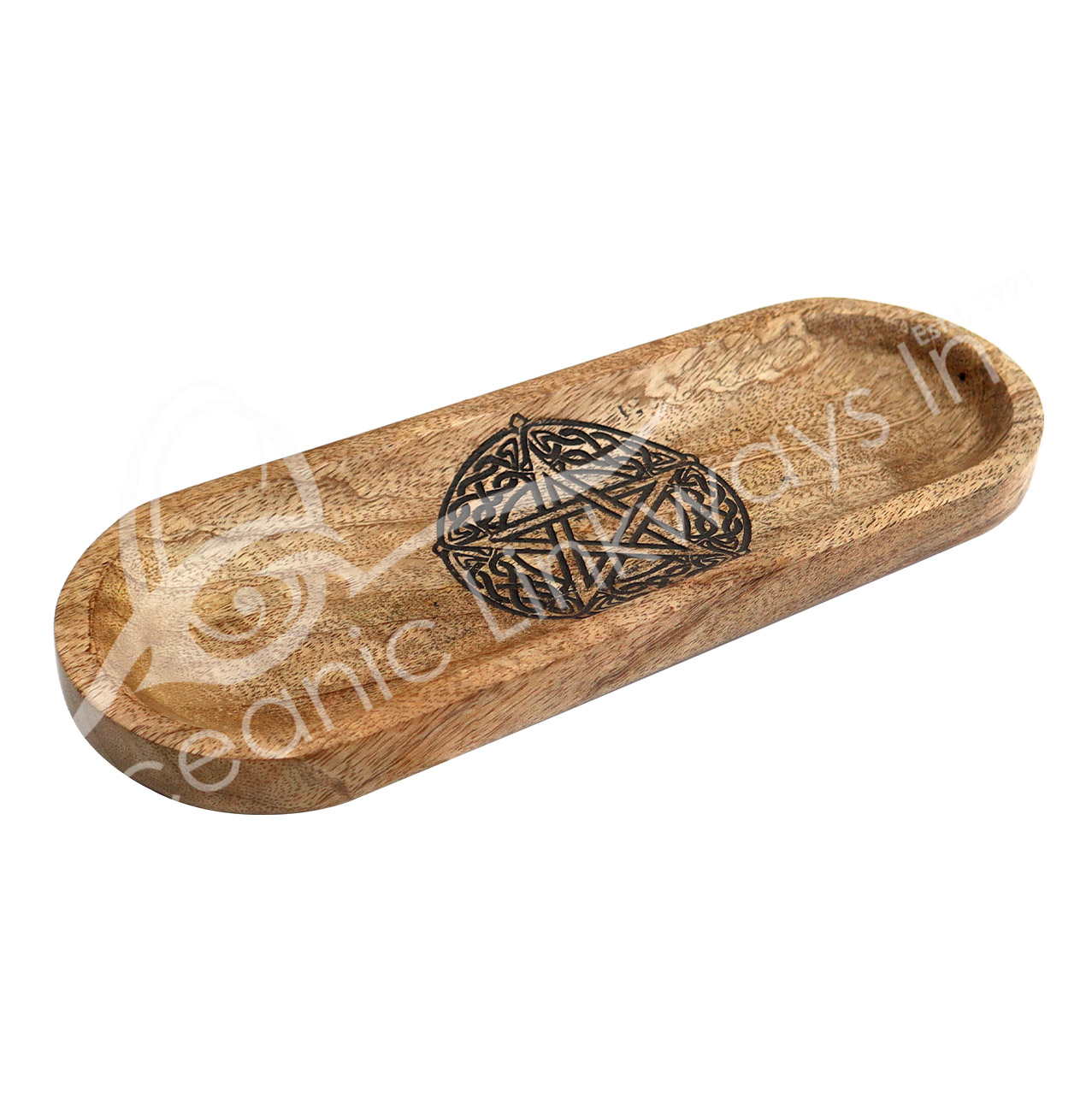 INCENSE HOLDER – MANGO WOOD LASER ENGRAVED PENTACLE & CELTIC KNOT OVAL 11″L X 4″W