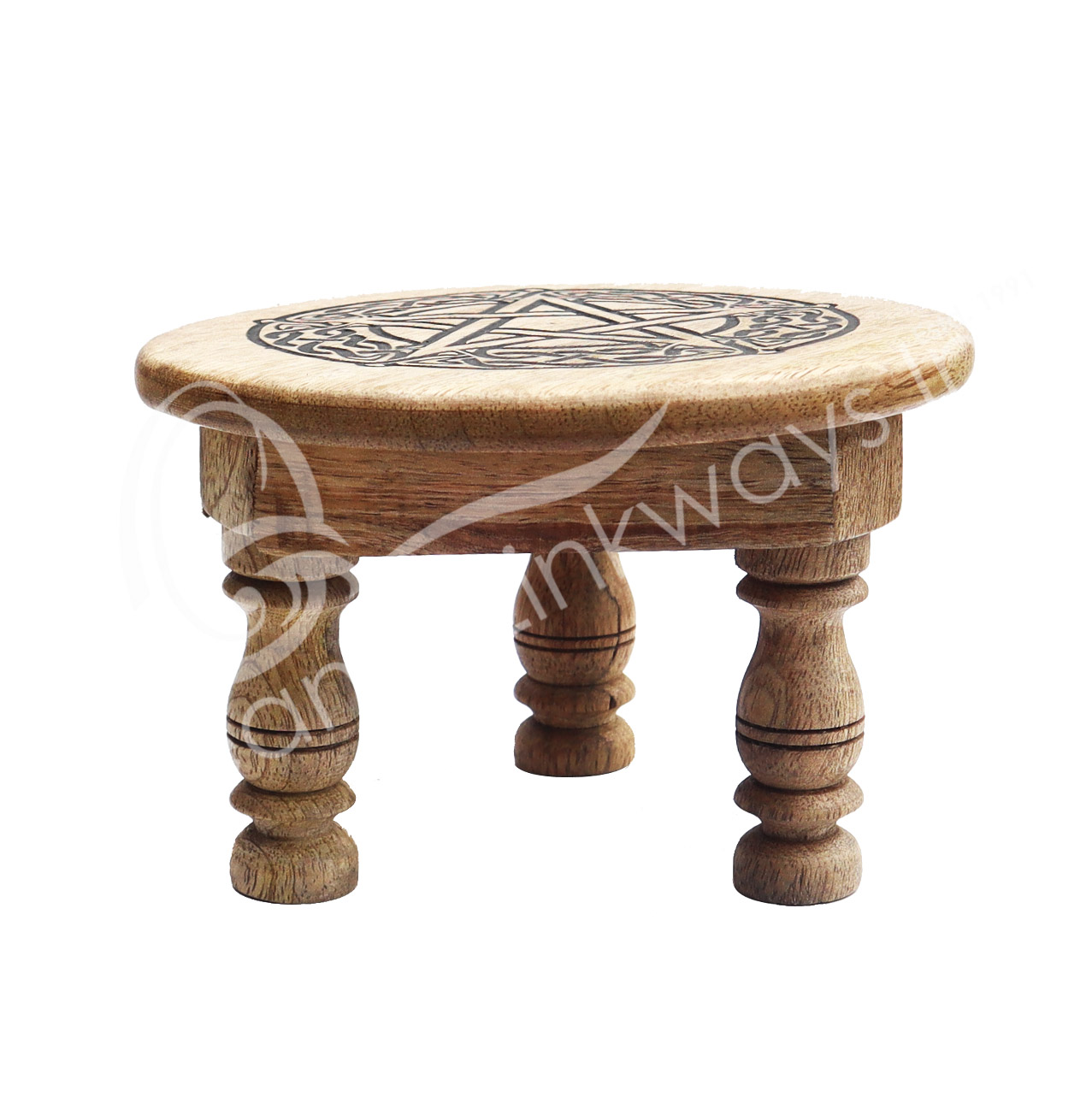 ALTAR TABLE – MANGO WOOD ENGRAVED PENTACLE 6″DIA. X 4″H