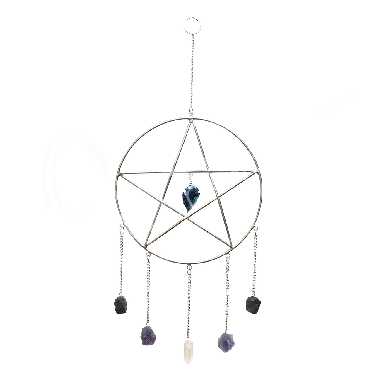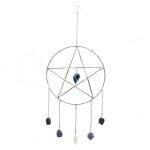 HANGING – WIRE, SILVER METAL PENTACLE WITH STONES 15″H X 6.25″W