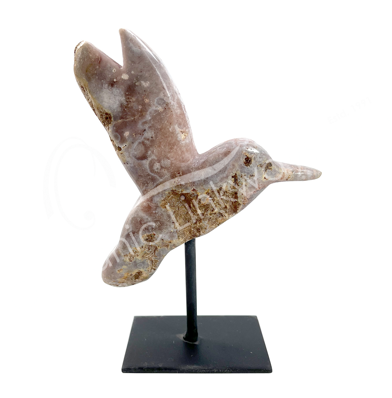 CARVING – HUMMINGBIRD AMETHYST, PINK ON METAL STAND 6-10″H