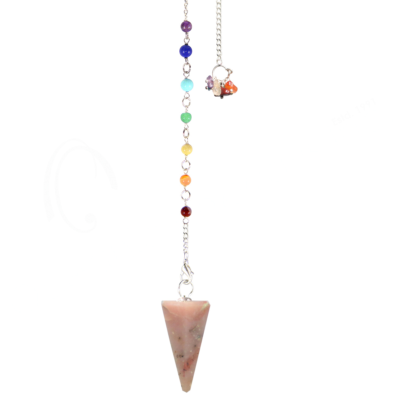 PENDULUM – HEXAGONAL OPAL, PINK CHAKRA CHAIN WITH CHIPS 10″L