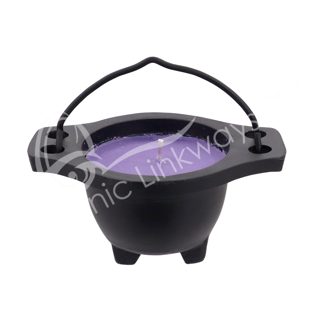 CANDLE – CAULDRON WITH LAVENDER PURPLE WAX 4″L X 2″H X 3″W