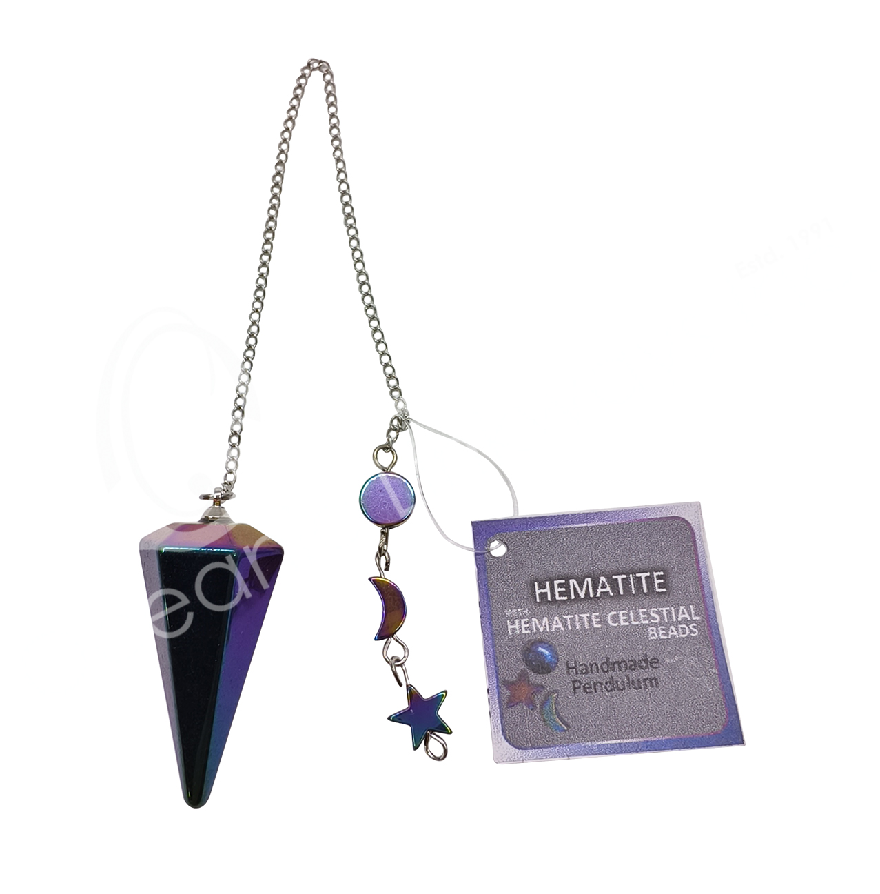 PENDULUM – HEMATITE, RAINBOW CELESTIAL 8.5″L