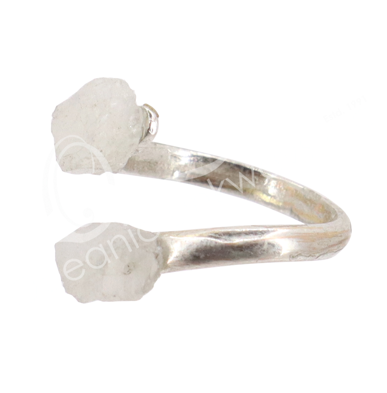 STERLING SILVER – RING, ADJUSTABLE FLOWER OF LIFE RAINBOW MOONSTONE 0.75″