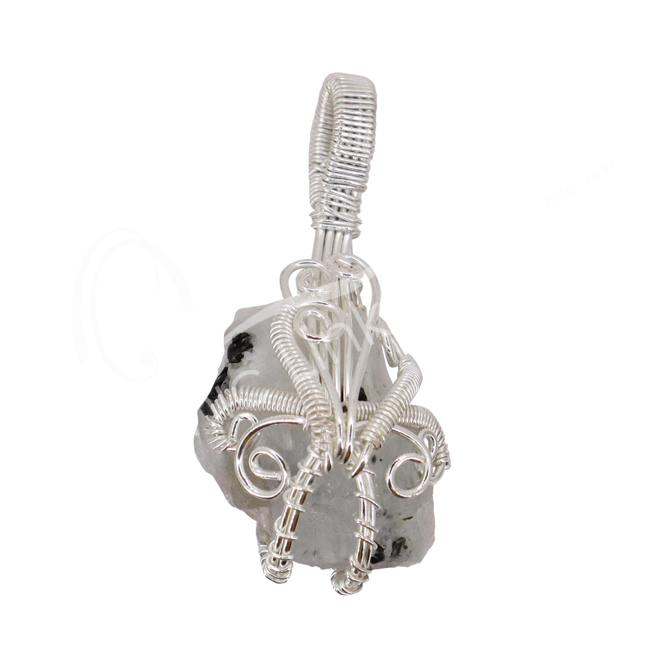 PENDANT – WIRE WRAP ROUGH MOONSTONE, RAINBOW 1.75-2″