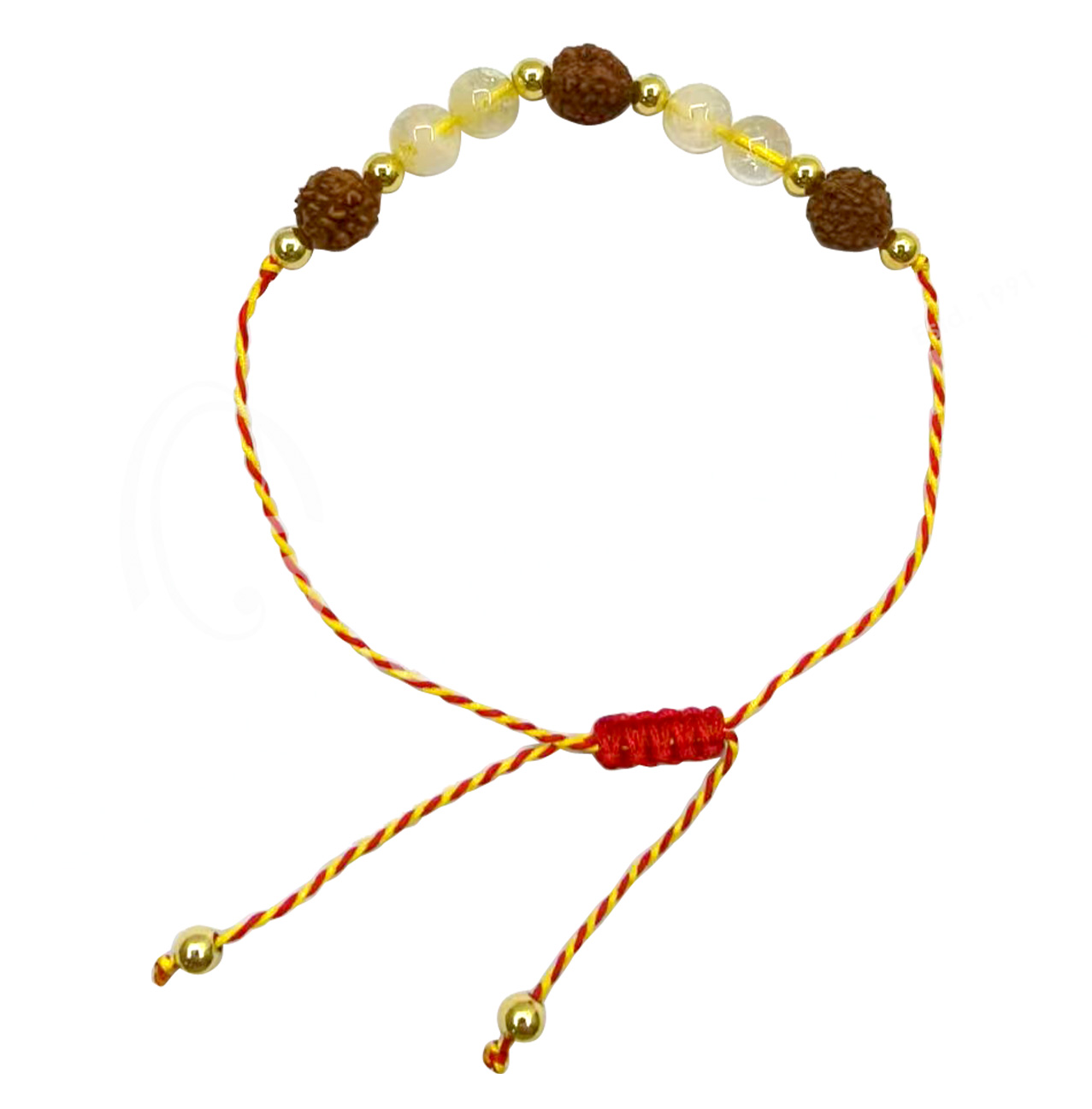 BRACELET – RAKHI FOR SUCCESS WITH CITRINE & RUDRAKSHA ADJUSTABLE 3-11.75″