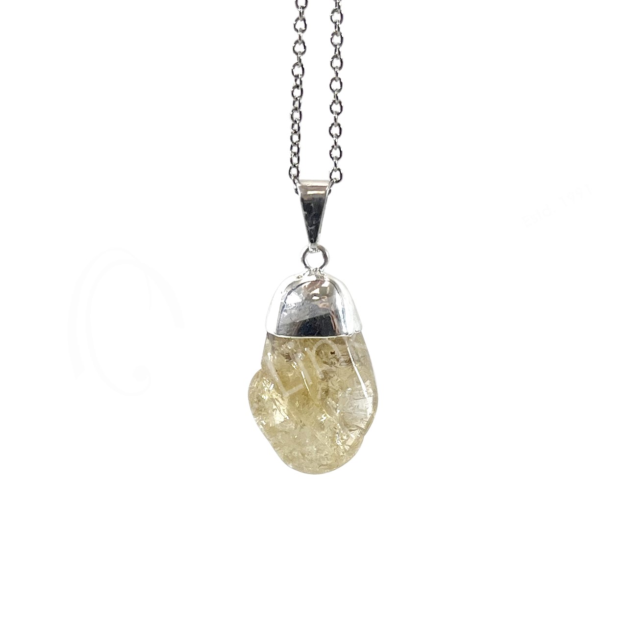 PENDANT – TUMBLED STONE CAP CITRINE 1.25-1.5″L