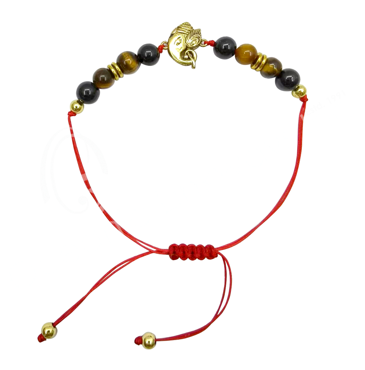 BRACELET – RAKHI FOR PROSPERITY WITH GANESHA, TIGER EYE & BLACK TOURMALINE ADJUSTABLE (8 MM)