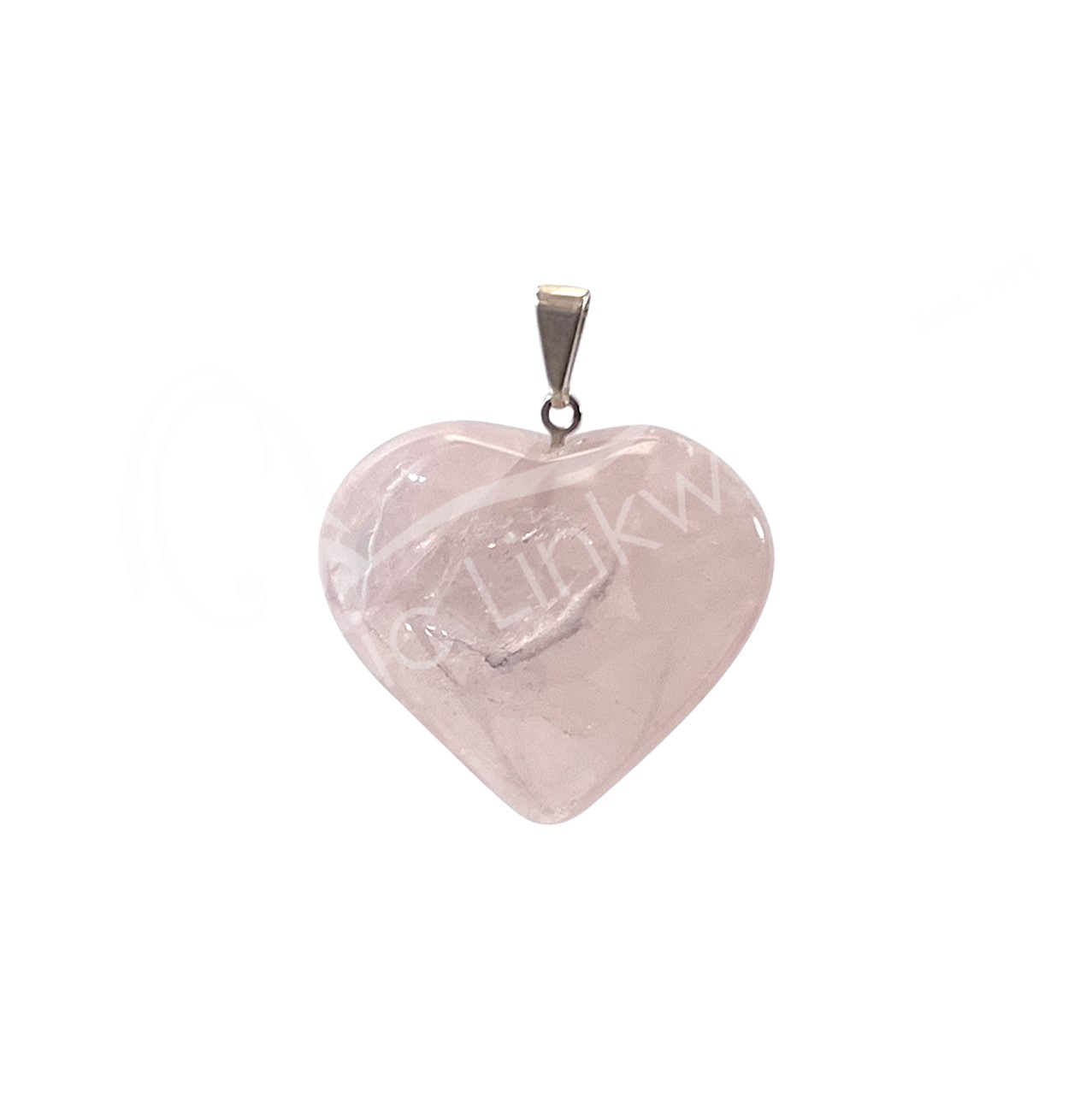 PENDANT – HEART ROSE QUARTZ 1-1.25″