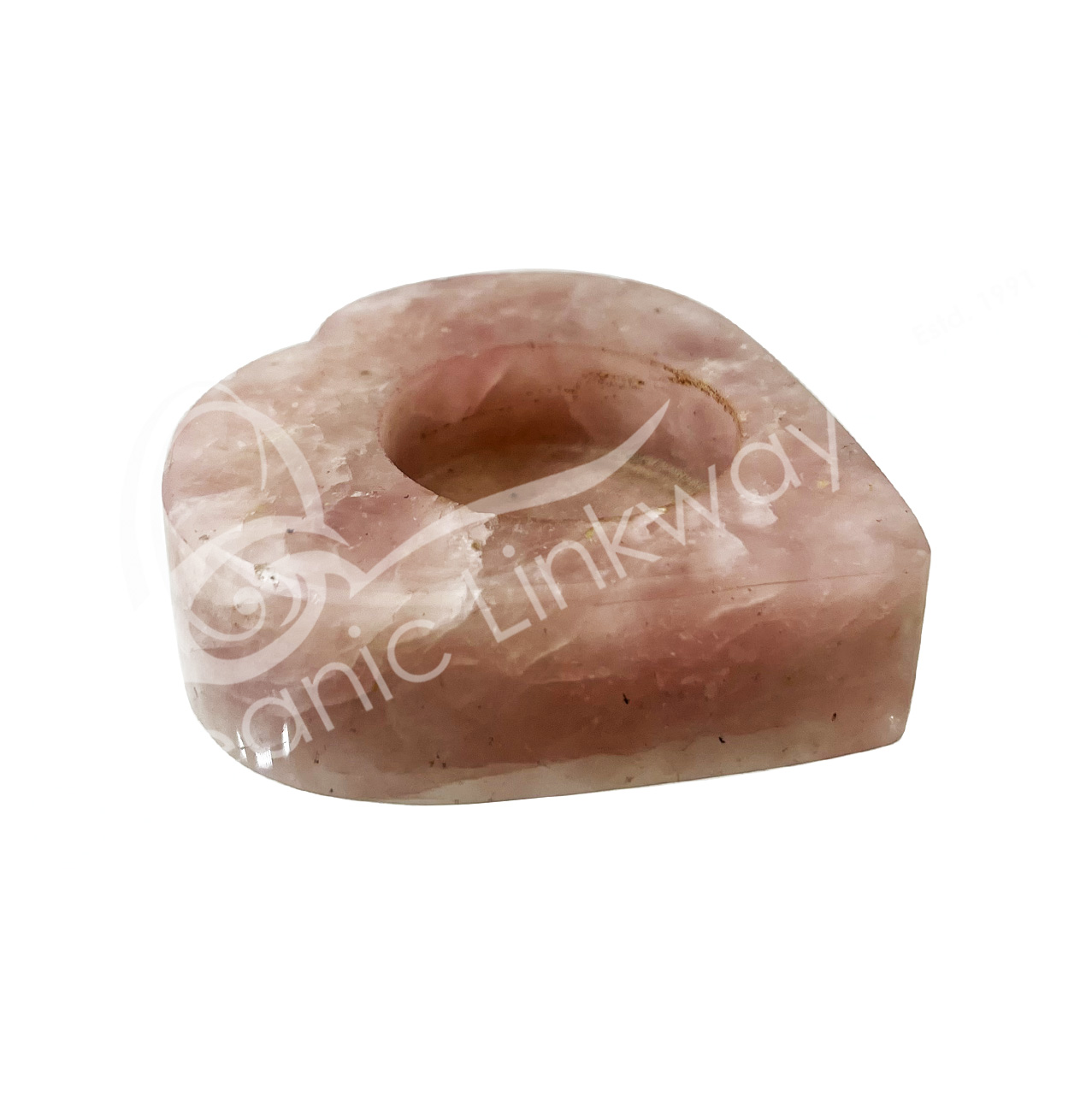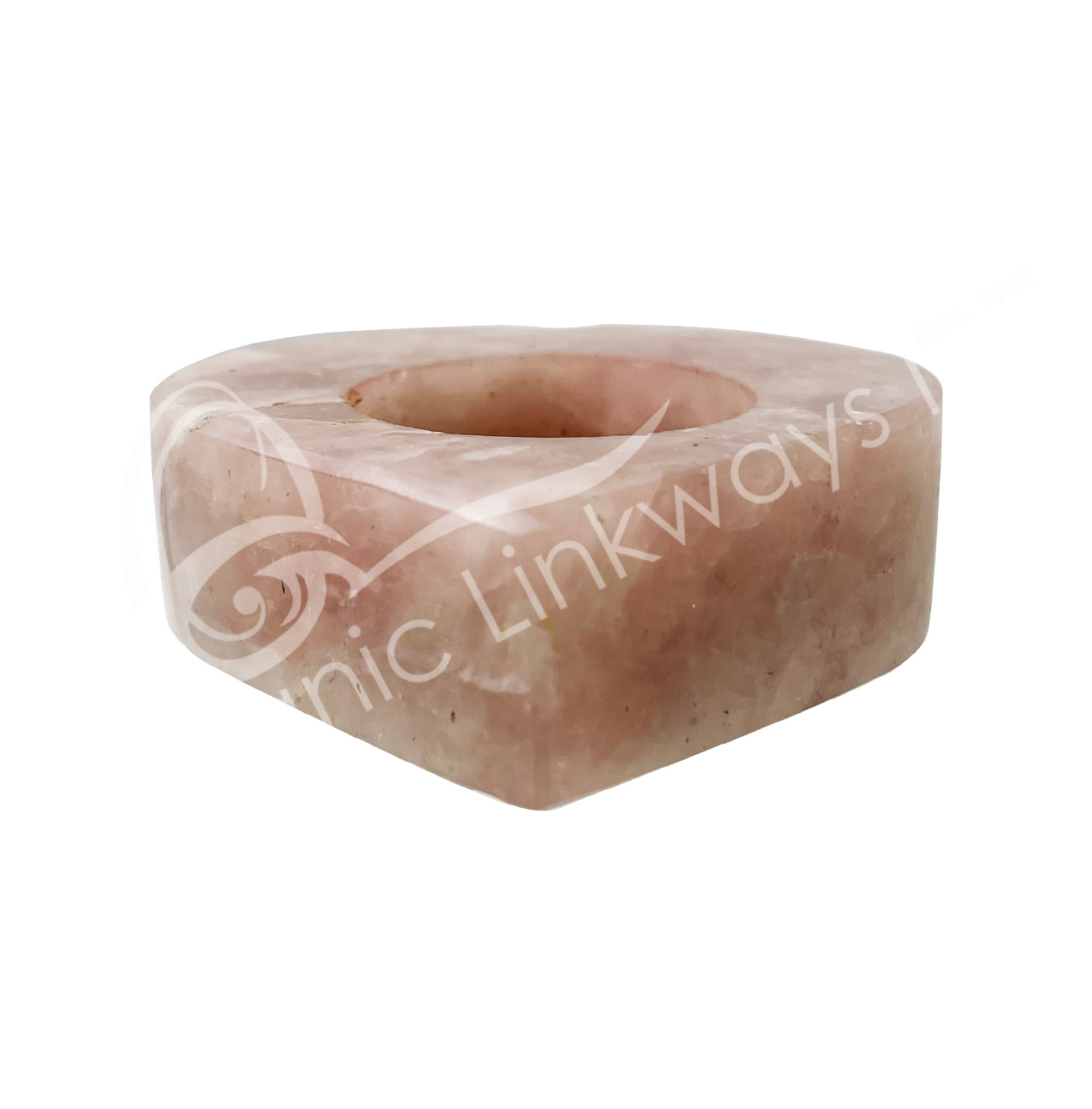TEALIGHT HOLDER – HEART ROSE QUARTZ 3 X 4″