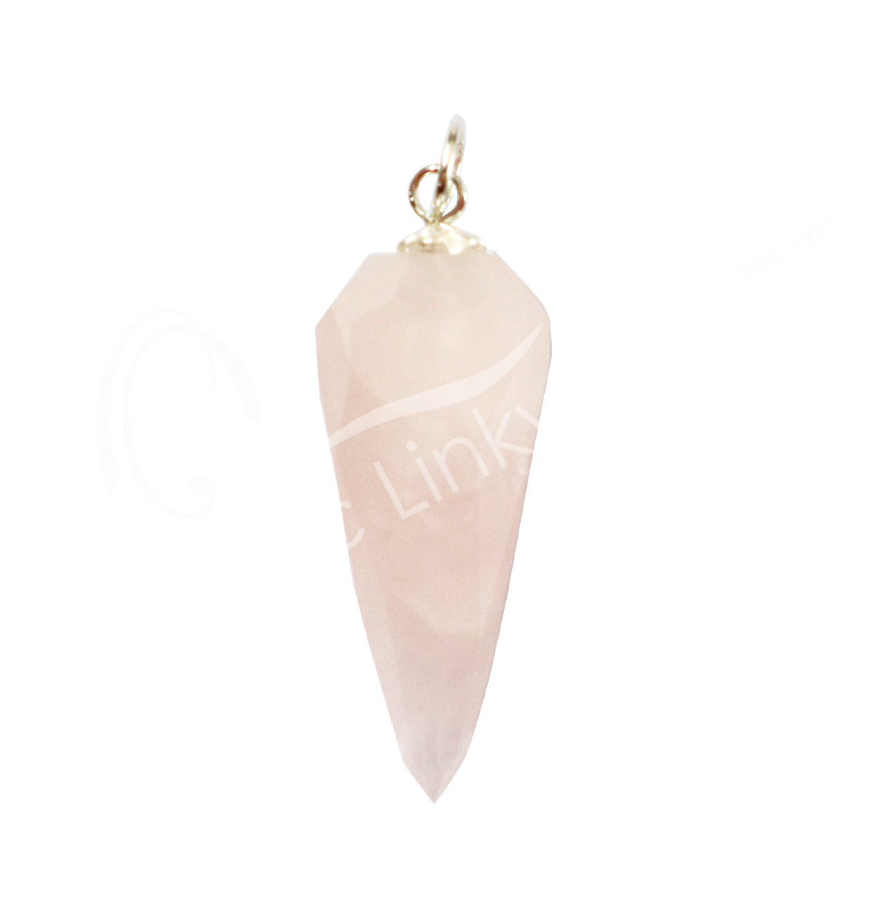 PENDANT – DROP ROSE QUARTZ MULTI FACETED 1.5-1.75″