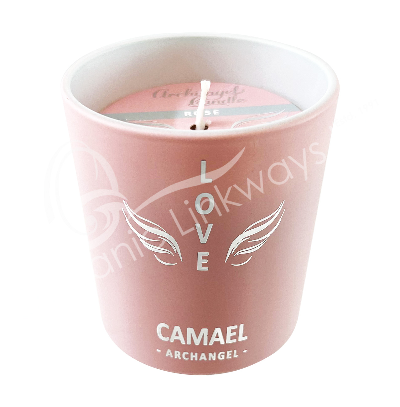 CANDLE – ARCHANGEL CAMAEL ROSE/LOVE 2.75″DIA. X 3″H