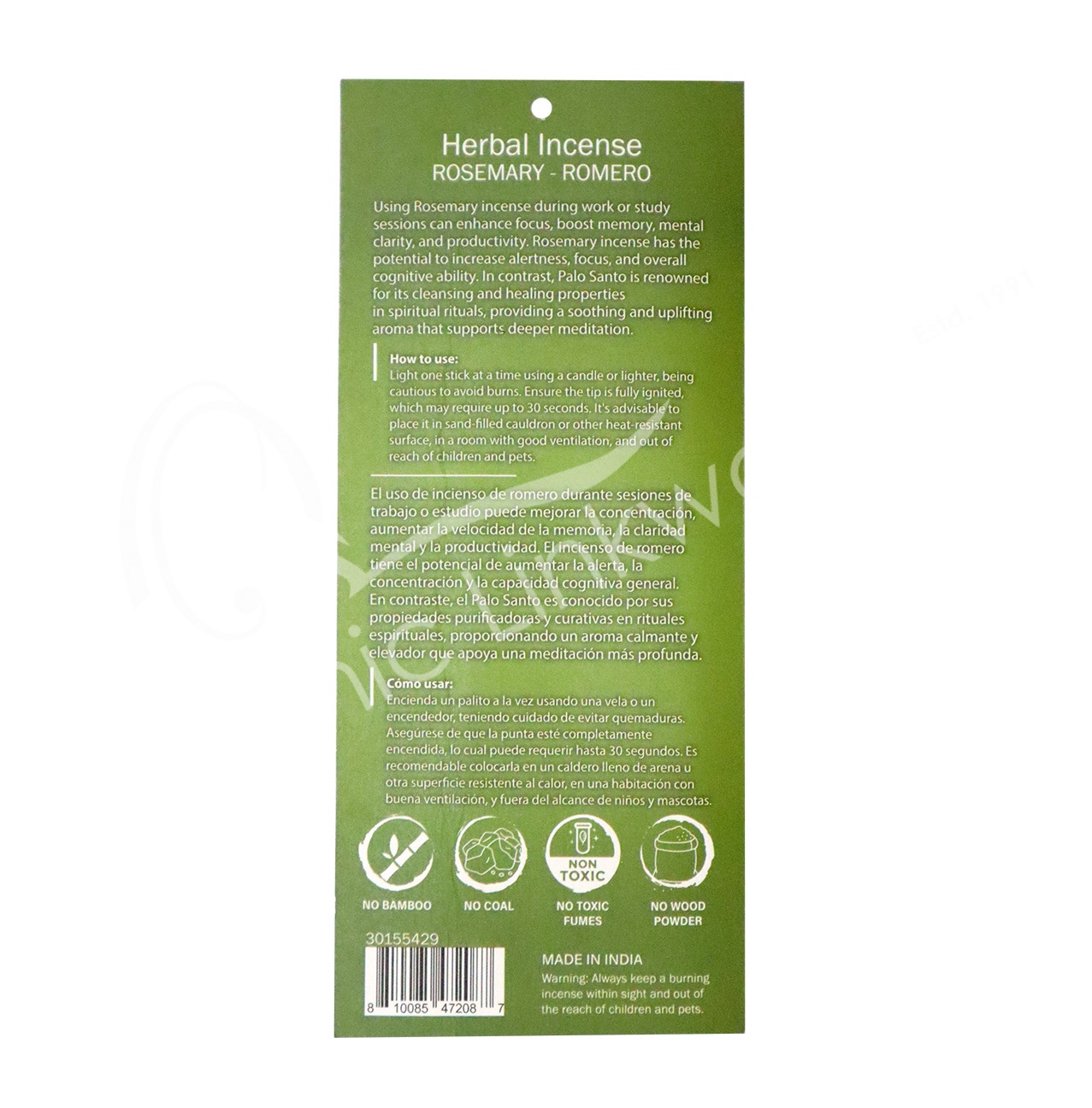 INCENSE – HERBAL RESIN ON PALO SANTO STICKS ROSEMARY (PK 2) 4-4.25″