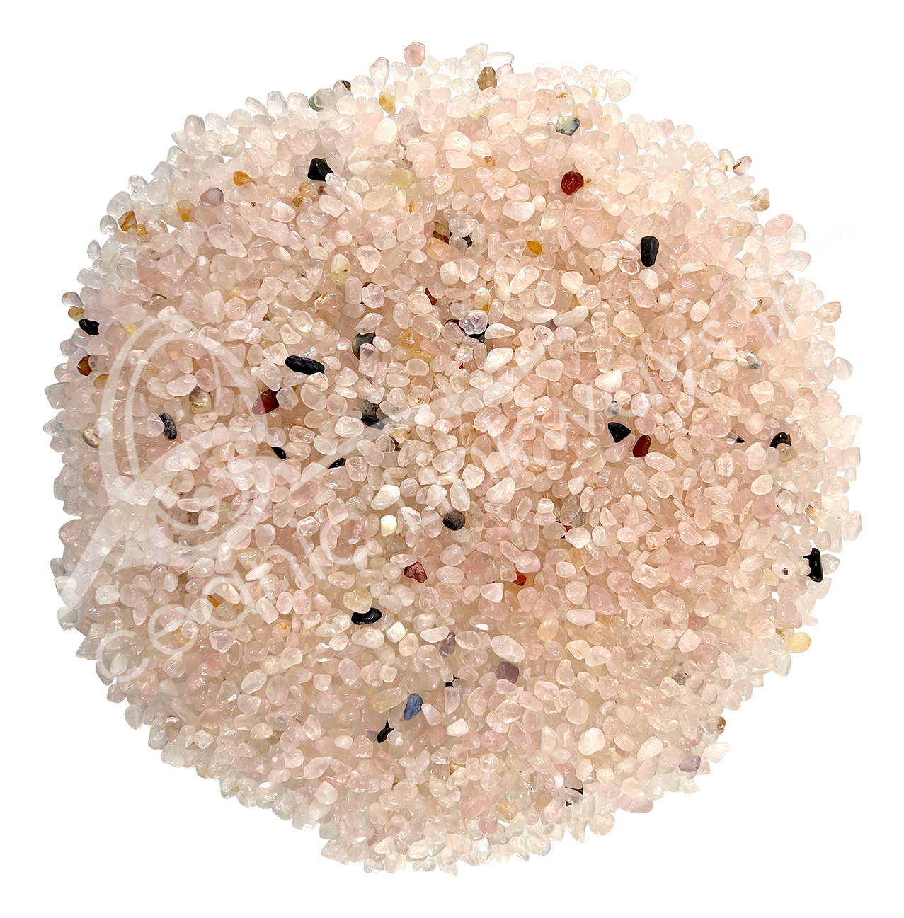 (CLOSE OUT) TUMBLED CHIPS – ROSE QUARTZ, ROUNDED 5-12 MM