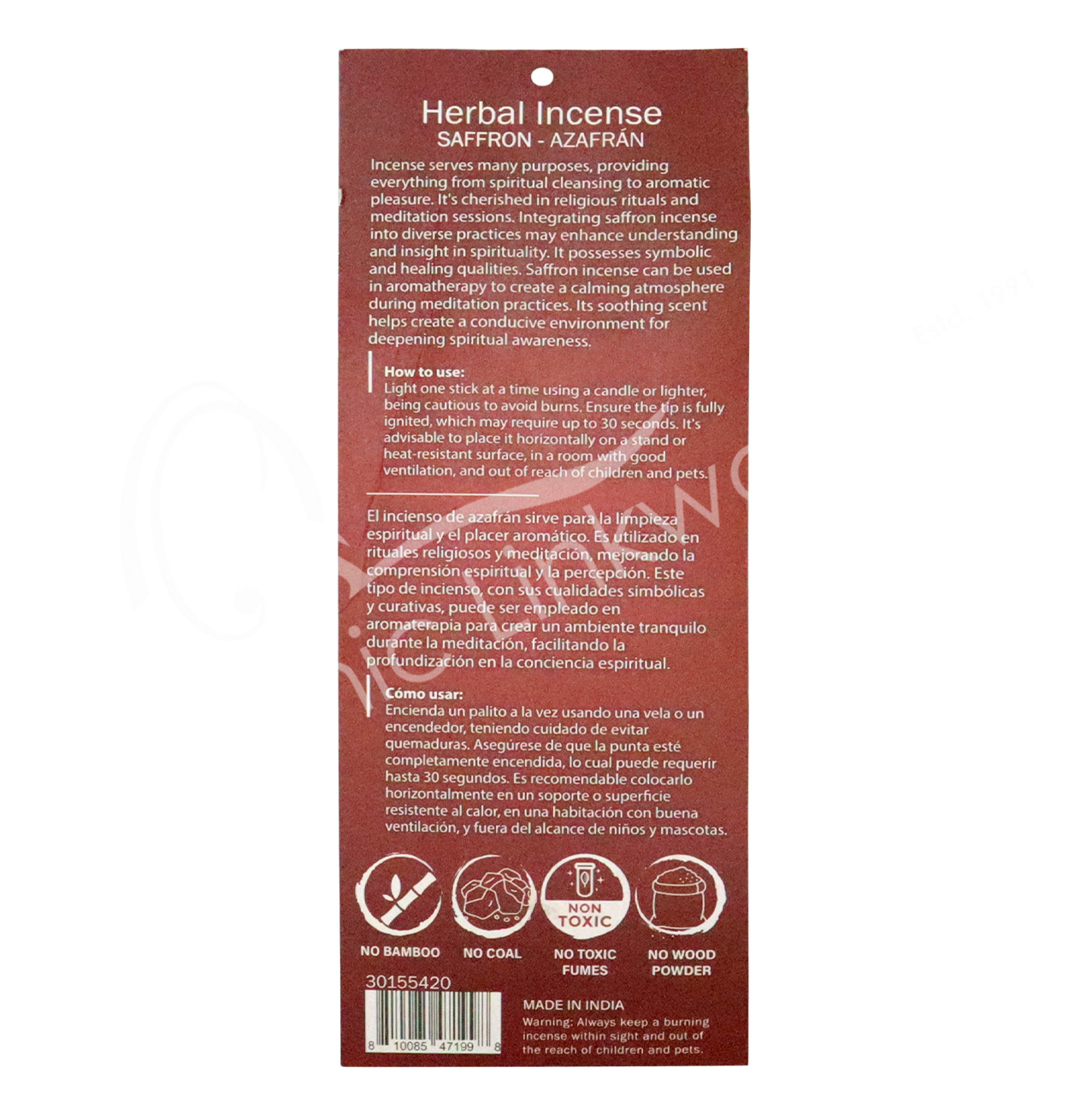 INCENSE – HERBAL RESIN STICKS SAFFRON (PK 3) 5.5-5.75″