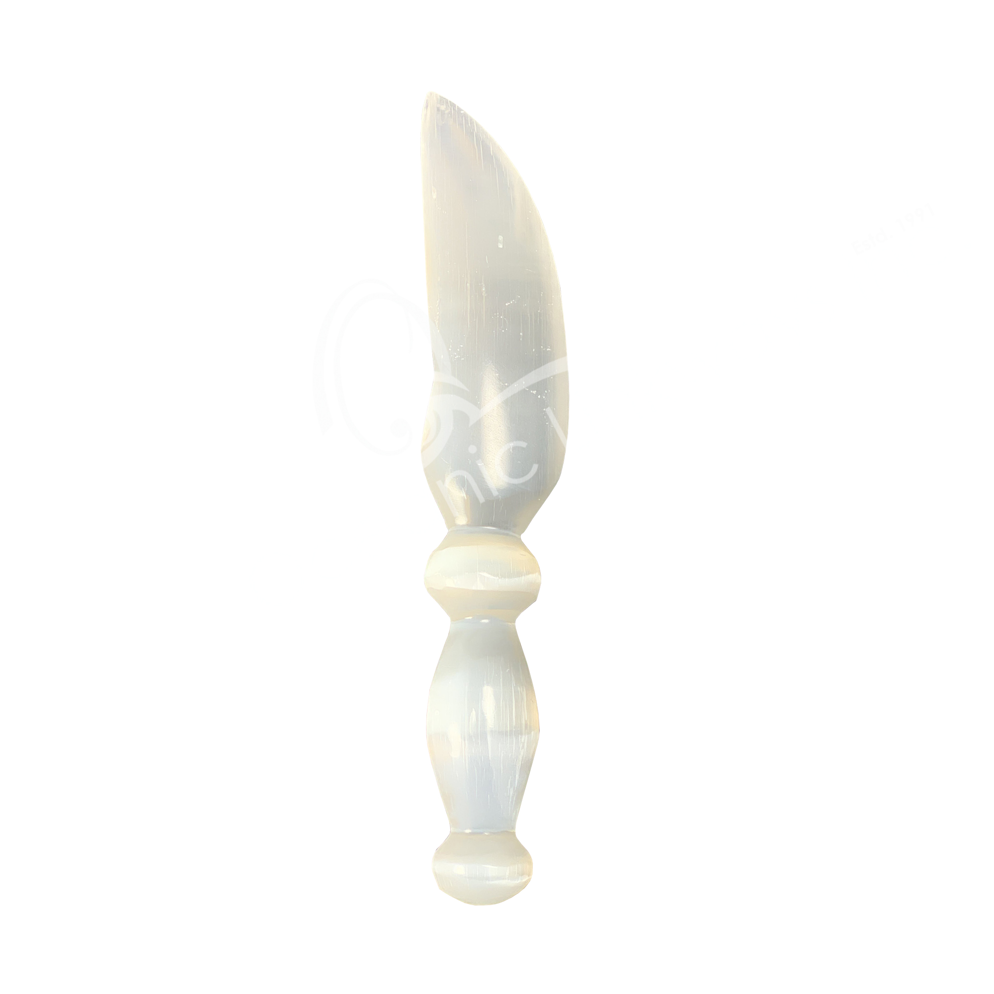 ATHAME – SELENITE CHAKRA SYMBOLS ENGRAVED 8″