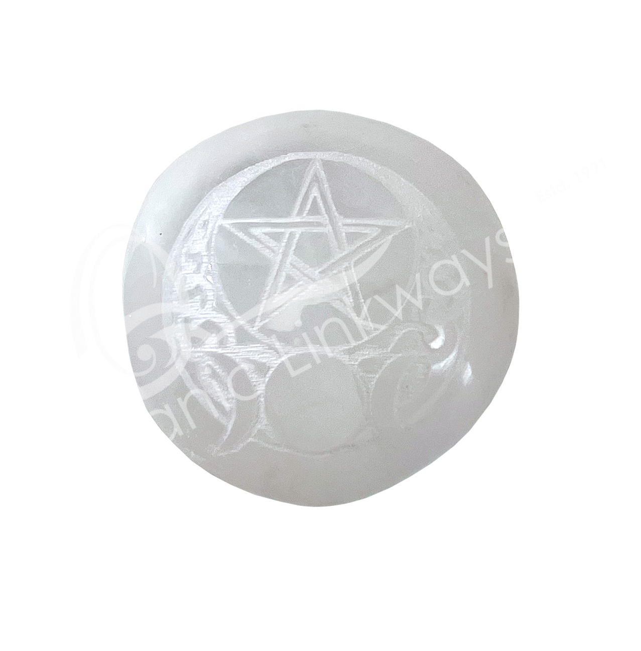 SPHERE – SELENITE ENGRAVED CELTIC PENTACLE 2″