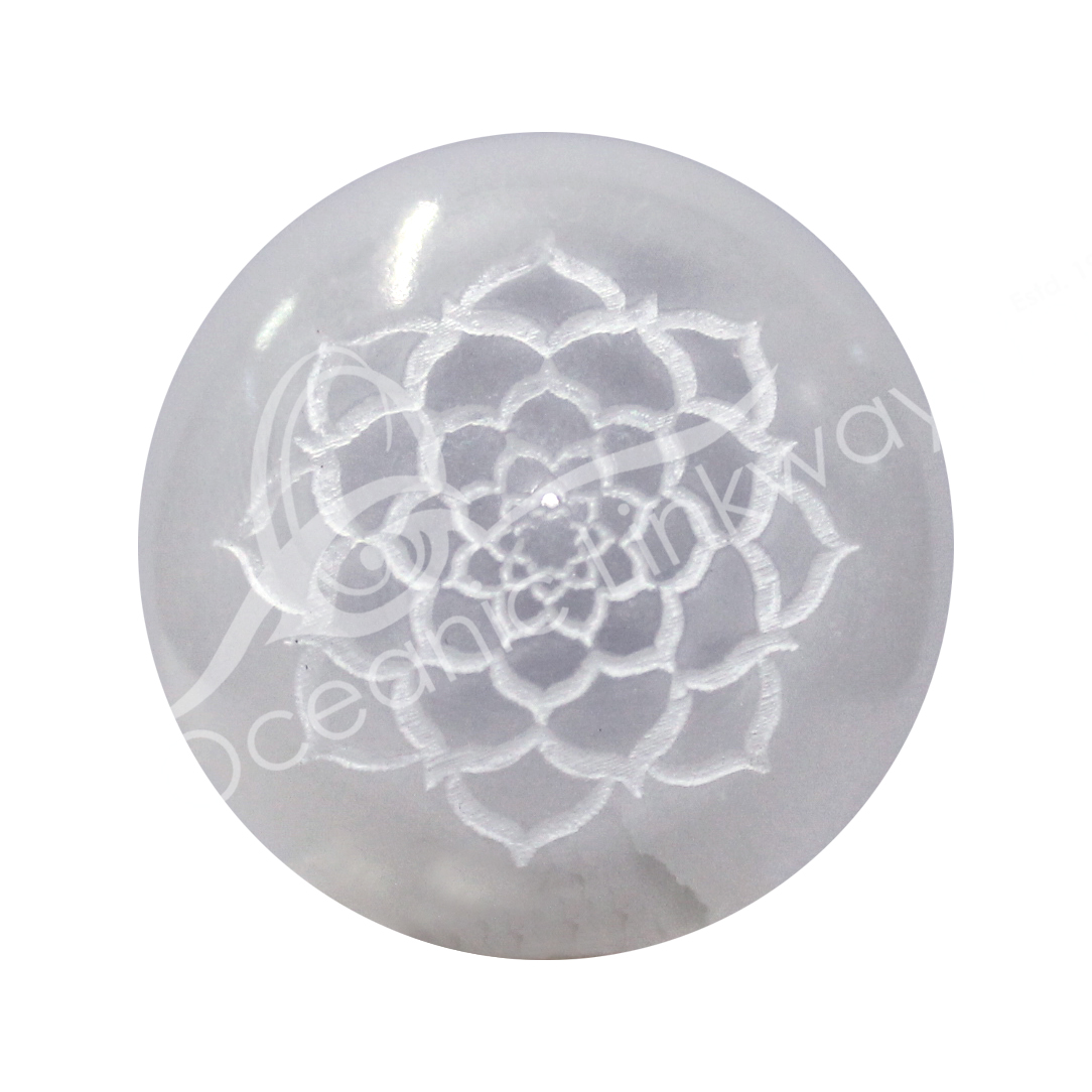 SPHERE – SELENITE ENGRAVED LOTUS 2″