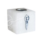 MINI CANDLE HOLDER – SELENITE CUBE WITH GODDESS CHARM (PK 3) 1.25″