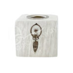 MINI CANDLE HOLDER – SELENITE CUBE WITH TREE OF LIFE CHARM (PK 3) 1.25″