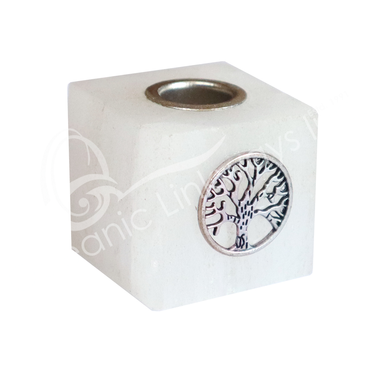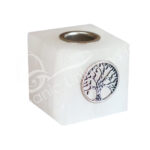 MINI CANDLE HOLDER – SELENITE CUBE WITH TREE OF LIFE CHARM (PK 3) 1.25″