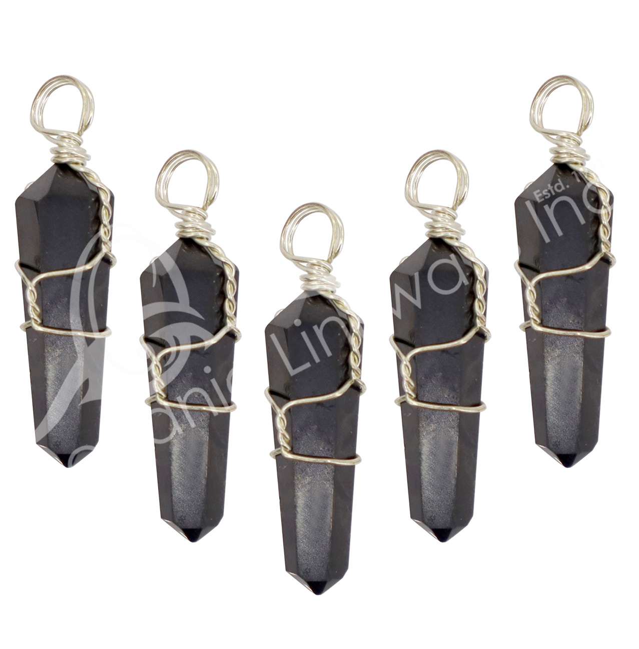 PENDANT – WIRE WRAP SHUNGITE (PK 5) 1.5″