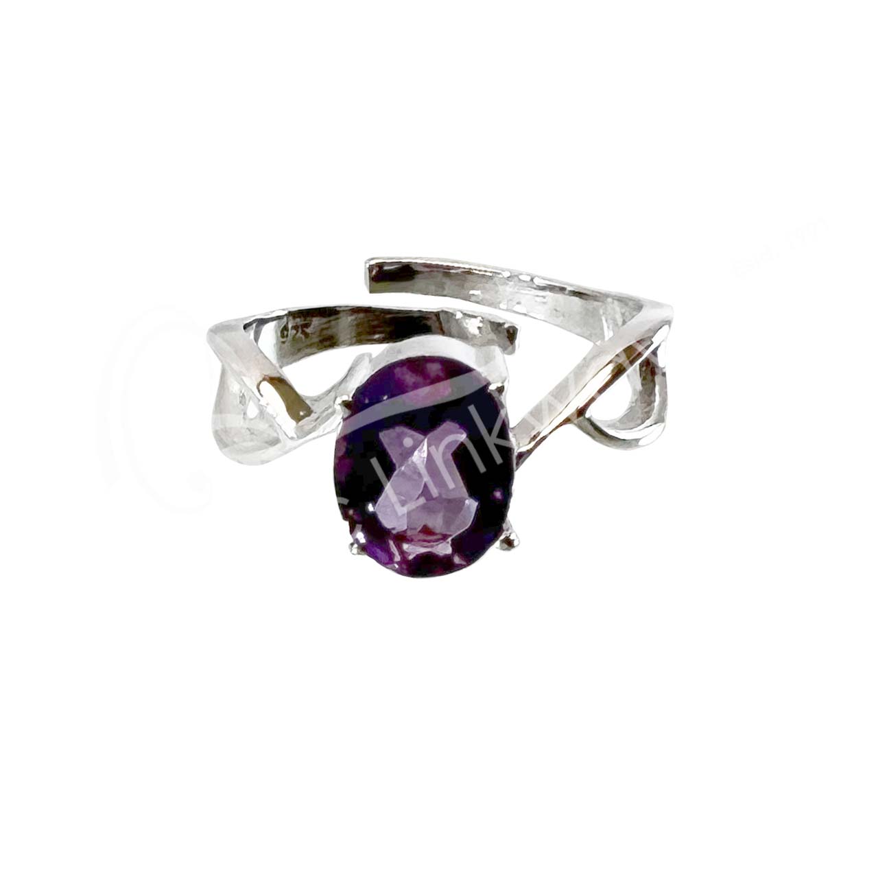 STERLING SILVER – RING, ADJUSTABLE FACETED OVAL AMETHYST