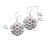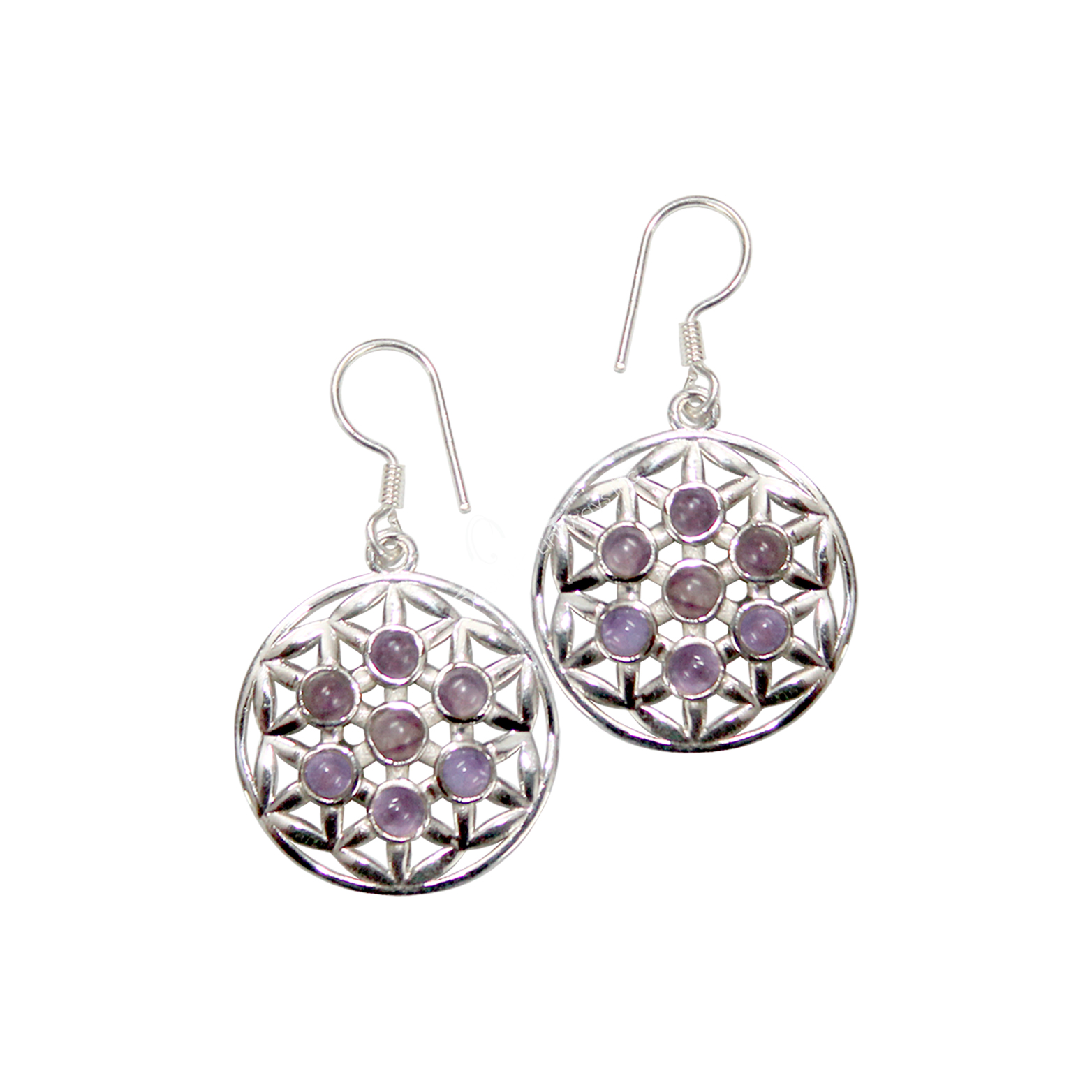 STERLING SILVER – EARRINGS FLOWER OF LIFE AMETHYST 0.75″