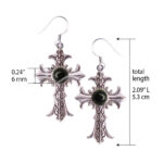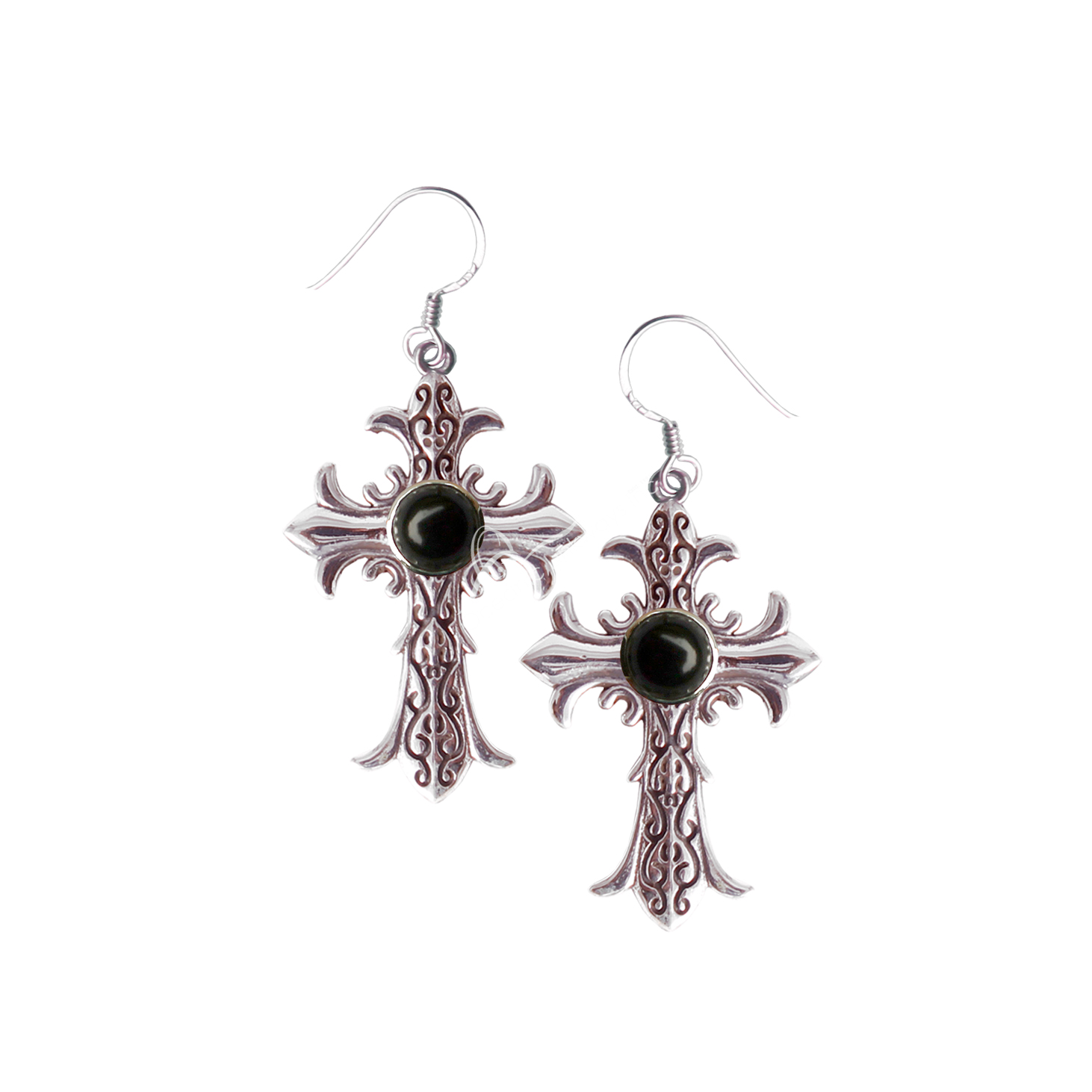(CLOSE OUT) STERLING SILVER – EARRINGS MEDIEVAL CROSS ONYX, BLACK 0.75″W X 1.75″L
