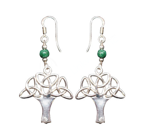 STERLING SILVER – EARRINGS TRIQUETRA MALACHITE 1″W X 1.5″L