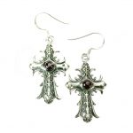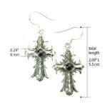(CLOSE OUT) STERLING SILVER – EARRINGS MEDIEVAL CROSS GARNET 0.75″W X 1.75″L