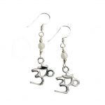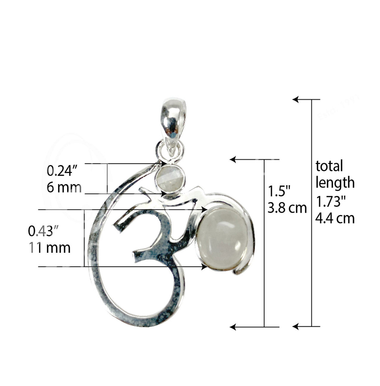 STERLING SILVER – PENDANT OM WITH 2 STONES RAINBOW MOONSTONE 1.25″W X 1.5″H
