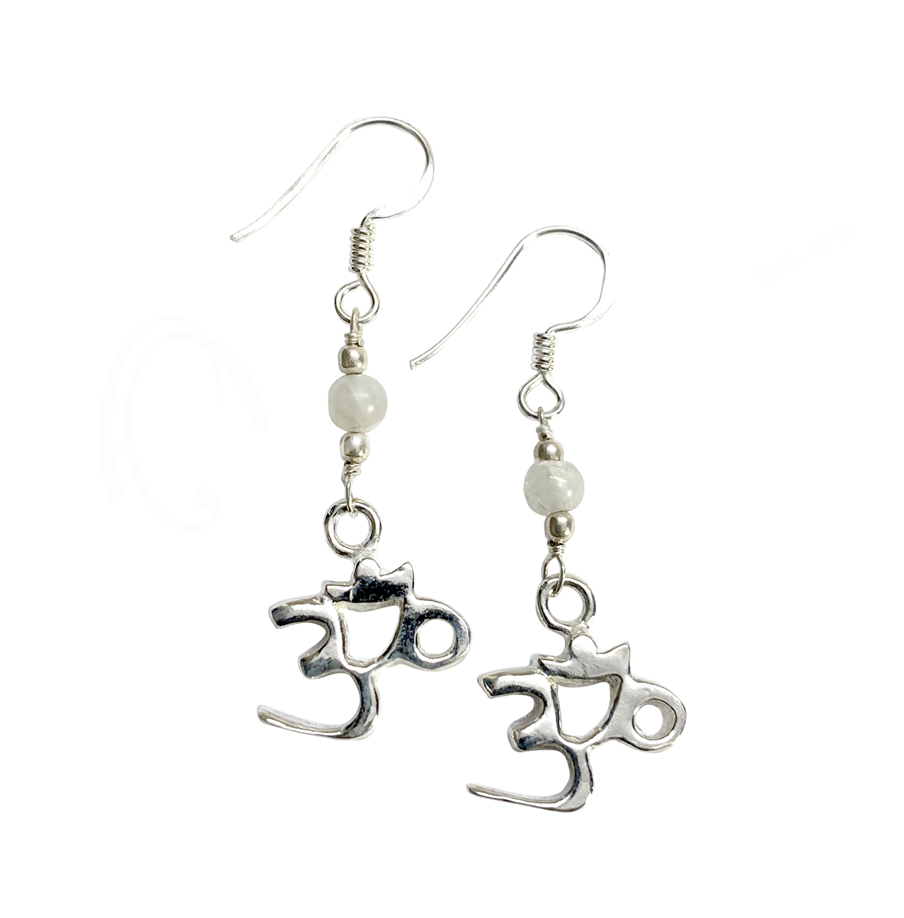 STERLING SILVER – EARRINGS OM RAINBOW MOONSTONE 2″