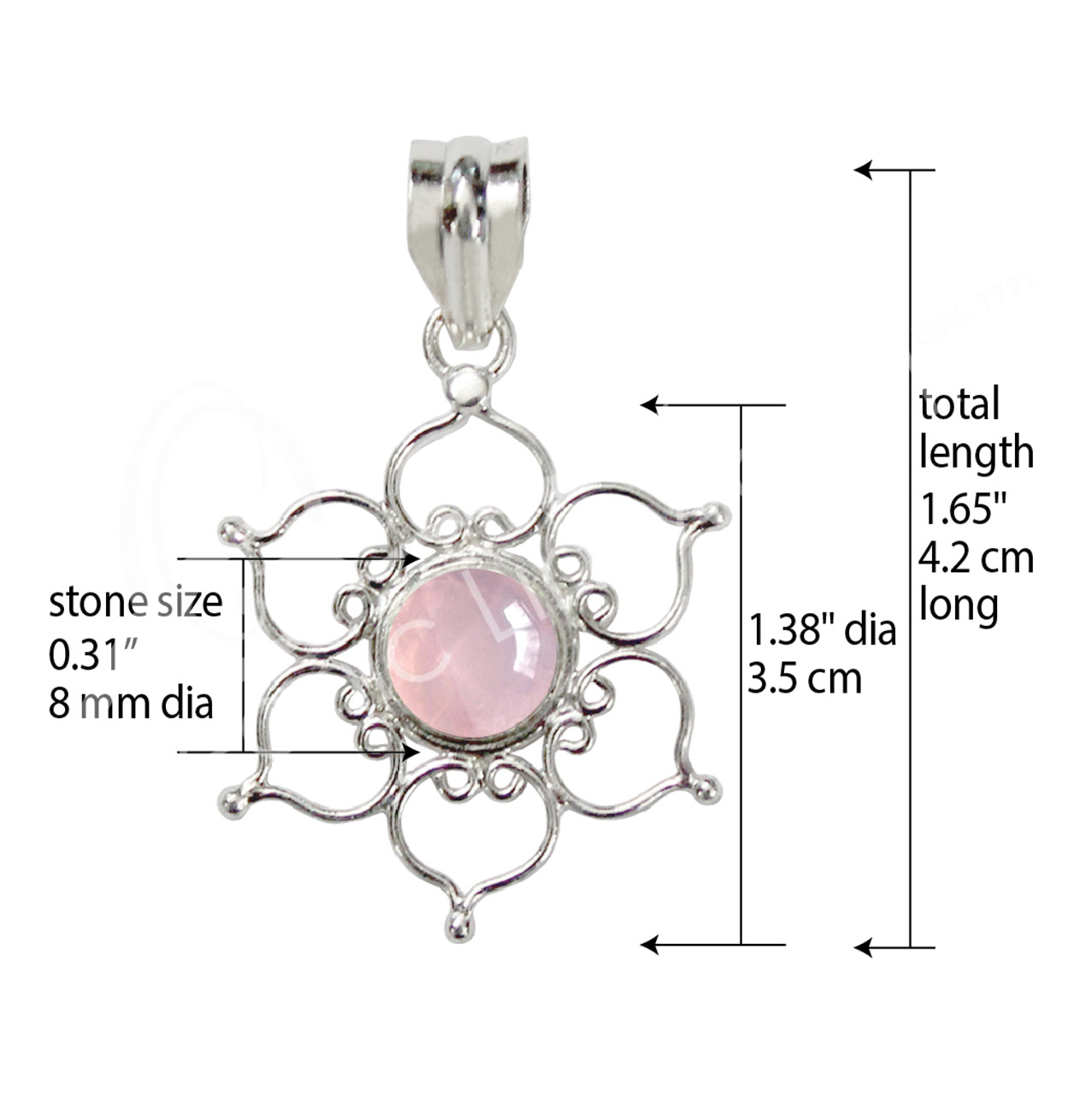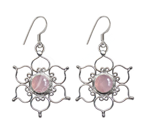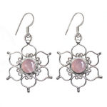 STERLING SILVER – EARRINGS LOTUS ROSE QUARTZ 1.25″DIA. X 2″L