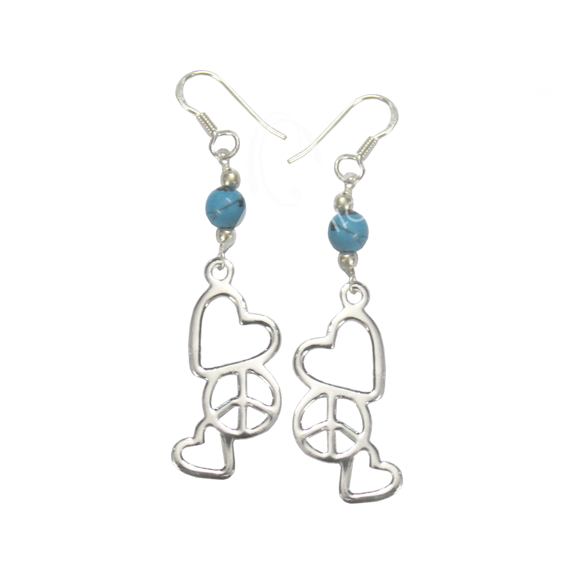 STERLING SILVER – EARRINGS PEACE & LOVE TURQUOISE 2.25″