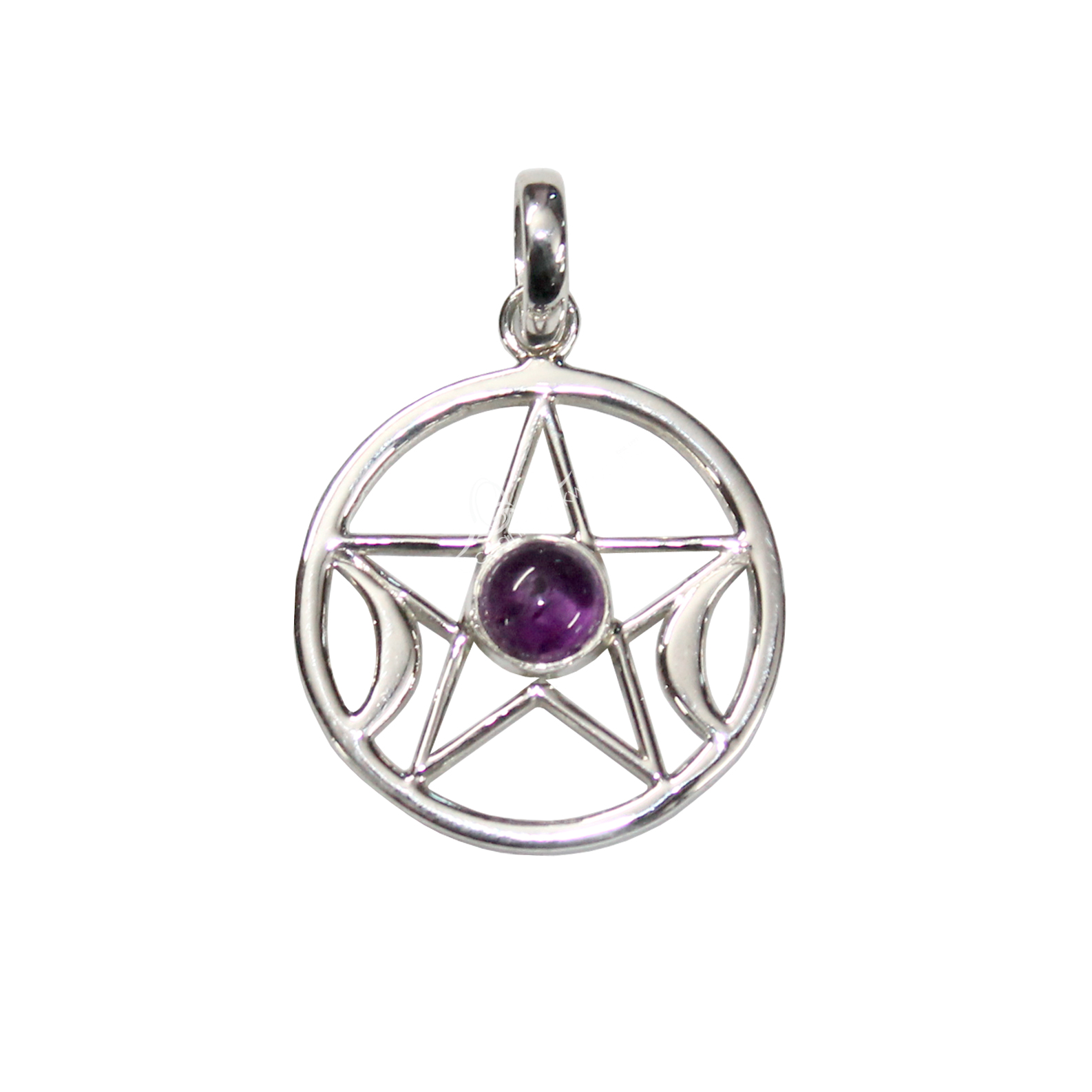 STERLING SILVER – PENDANT MOON PENTACLE AMETHYST 1.25″