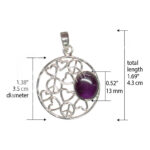 STERLING SILVER – PENDANT PEACE & LOVE AMETHYST 1.6″