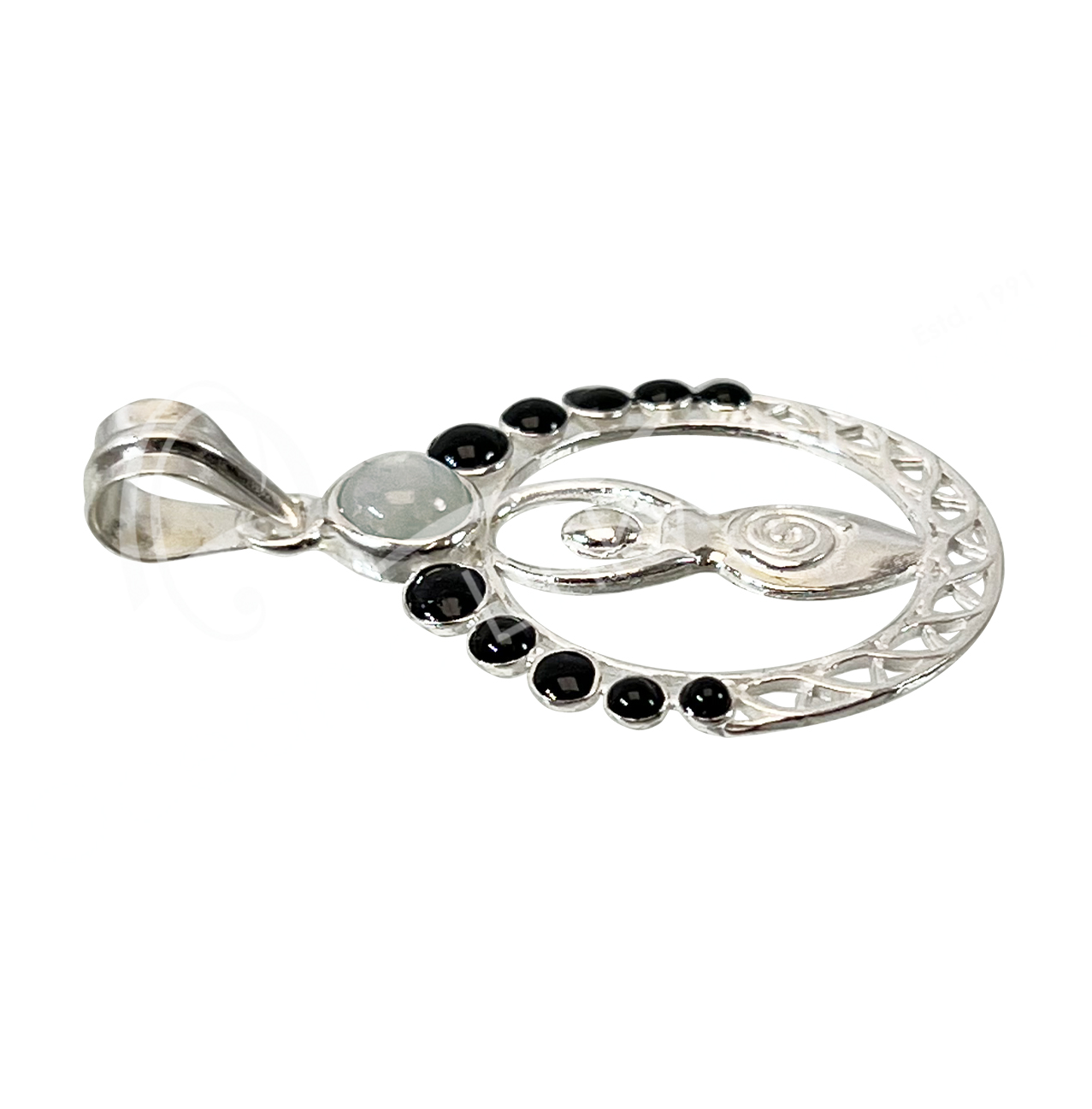 STERLING SILVER – PENDANT GODDESS WITH MOON PHASES RAINBOW MOONSTONE 2.17″L
