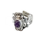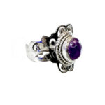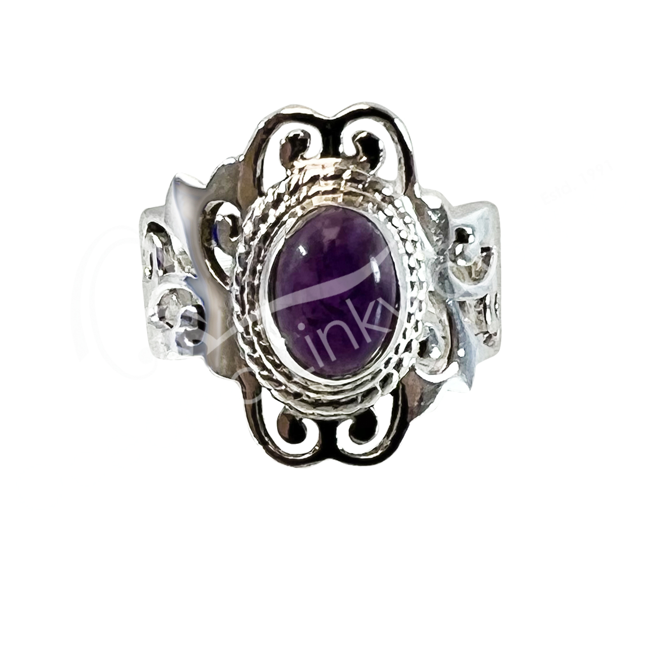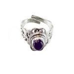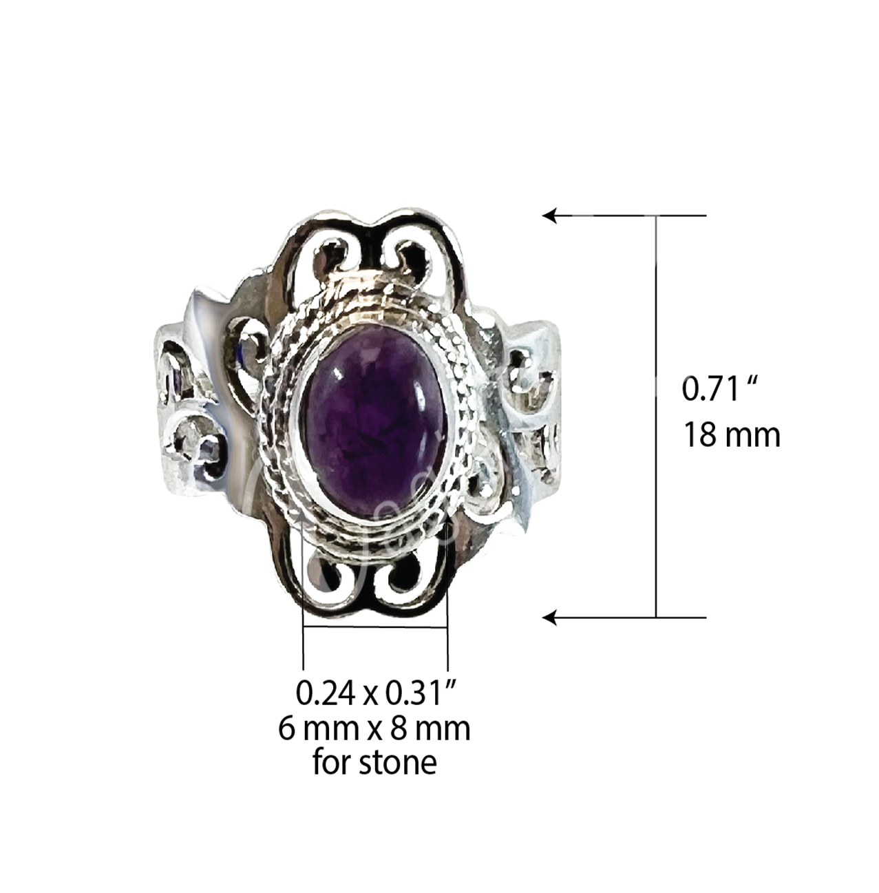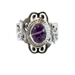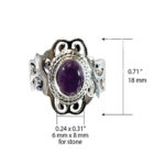 STERLING SILVER – RING, ADJUSTABLE BIG JALI OVAL AMETHYST 0.45″W