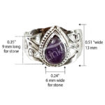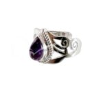 STERLING SILVER – RING, ADJUSTABLE PAN JALI TEARDROP AMETHYST