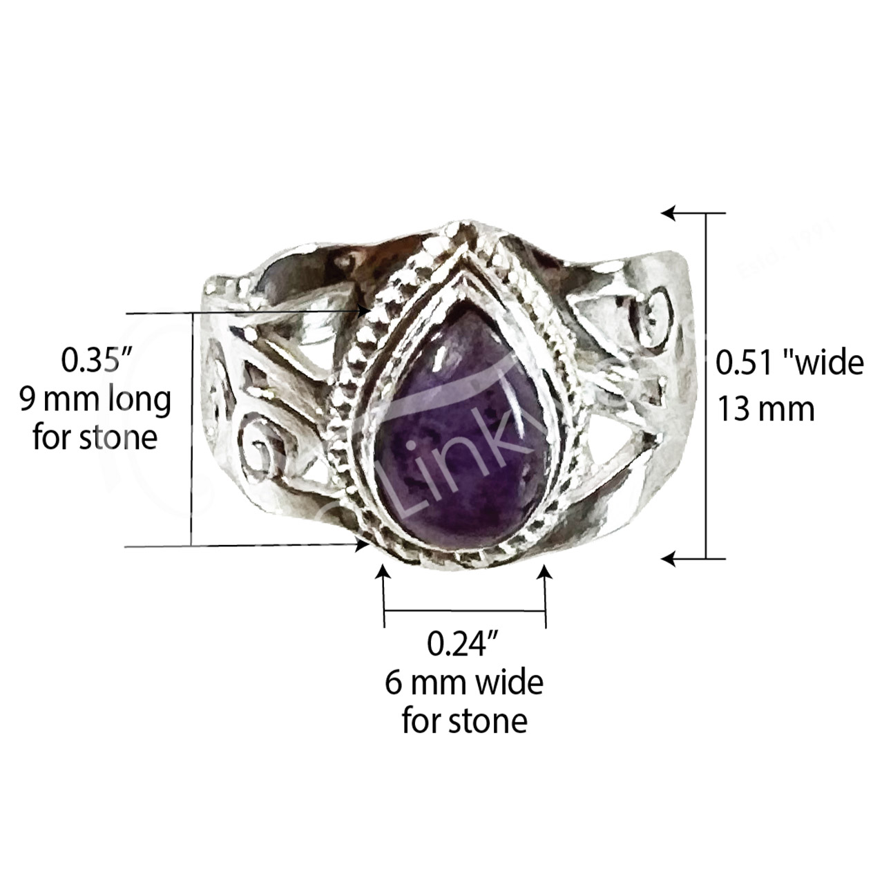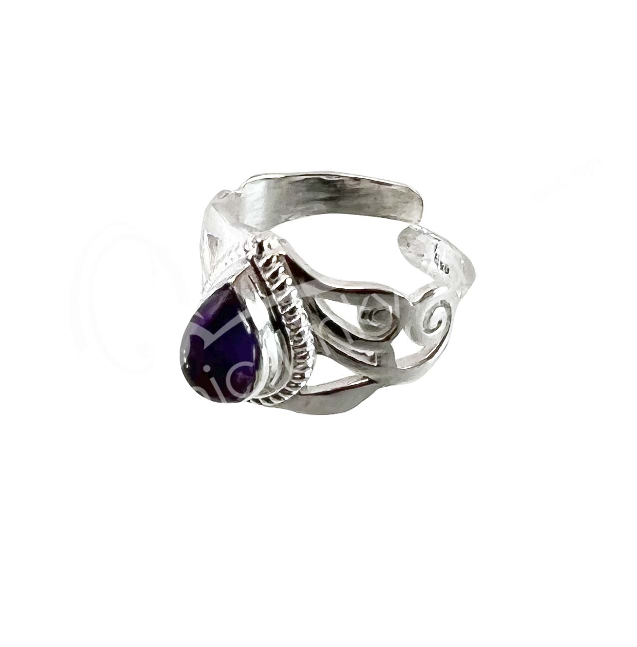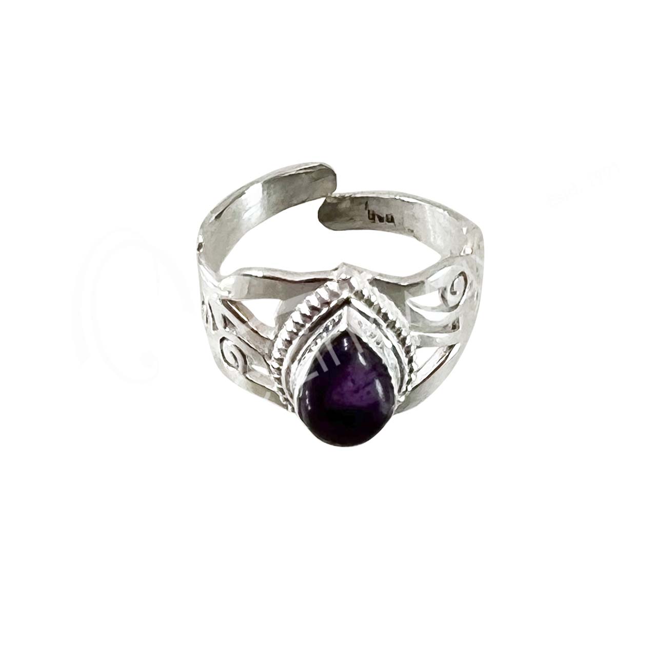 STERLING SILVER – RING, ADJUSTABLE PAN JALI TEARDROP AMETHYST