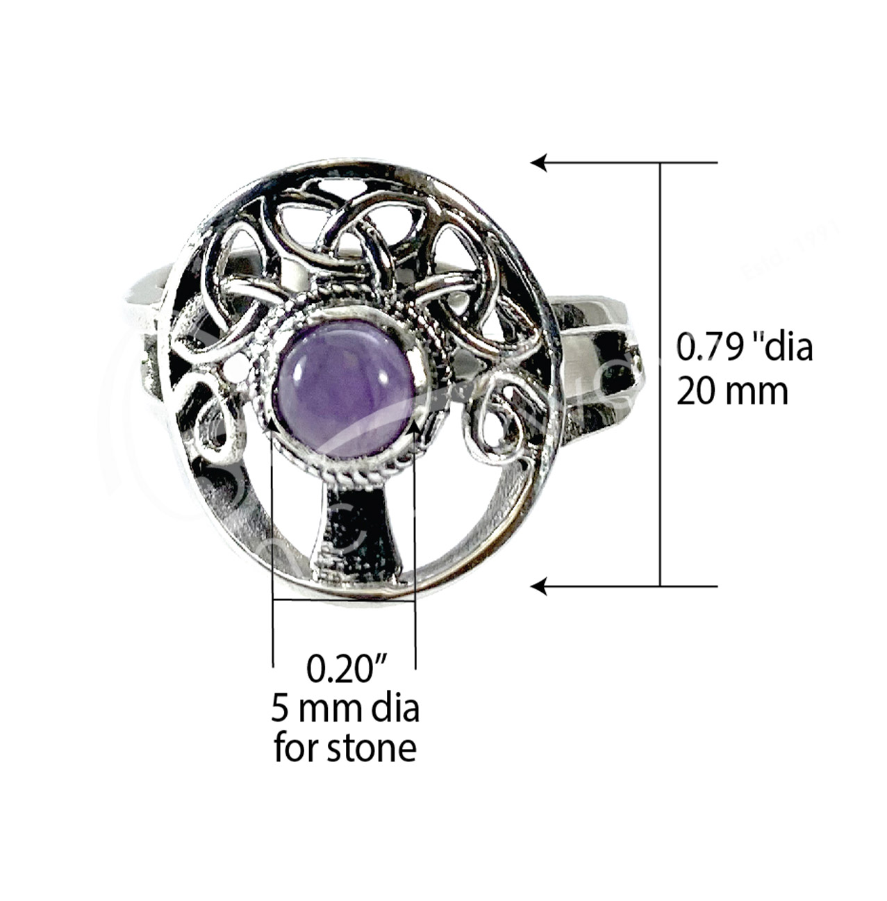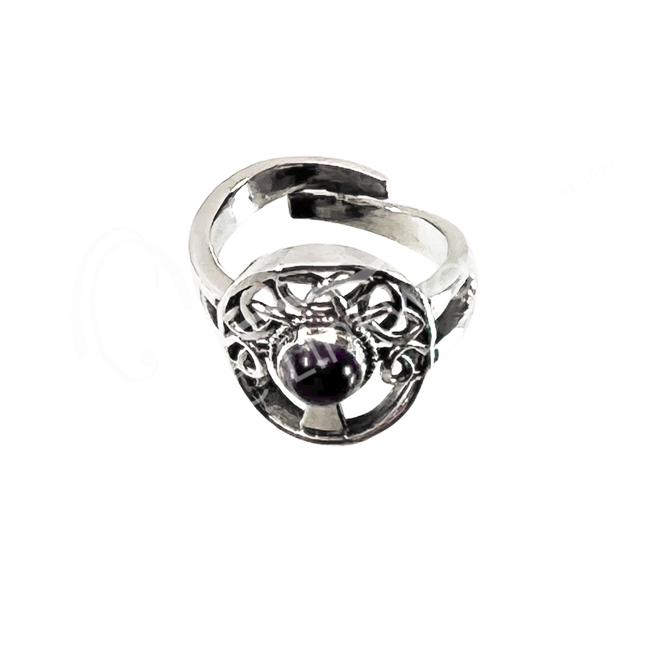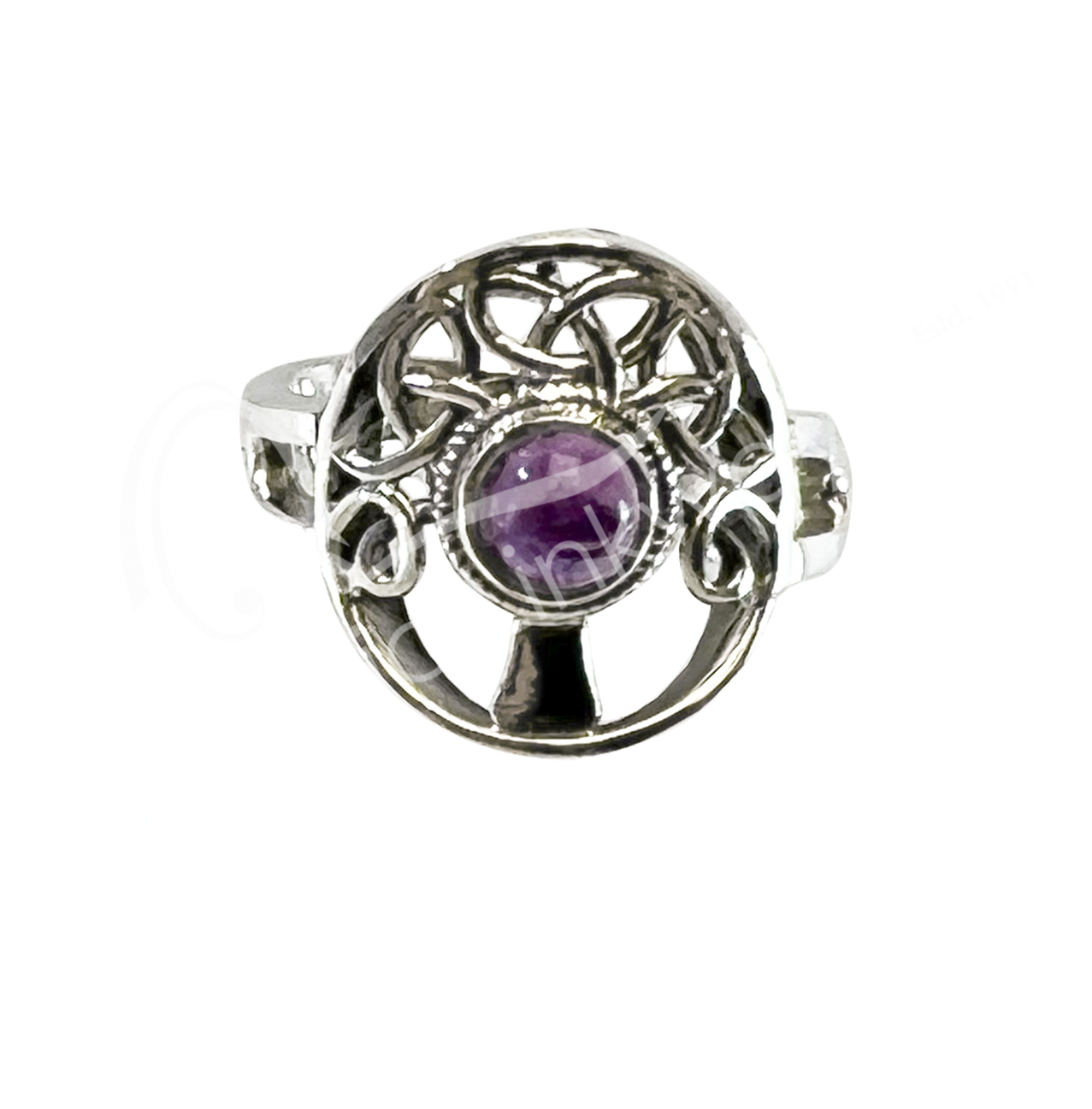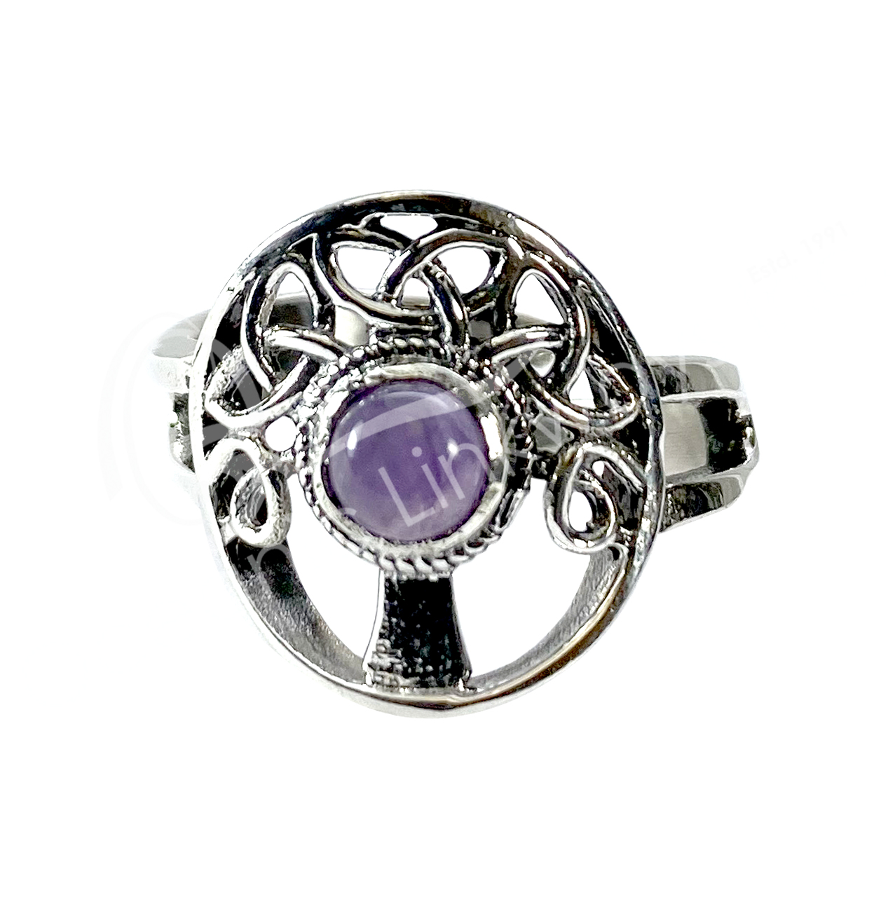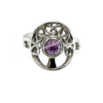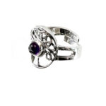 STERLING SILVER – RING, ADJUSTABLE TREE OF LIFE AMETHYST