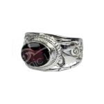 STERLING SILVER – RING JALI FACETED GARNET ADJUSTABLE 0.45″W