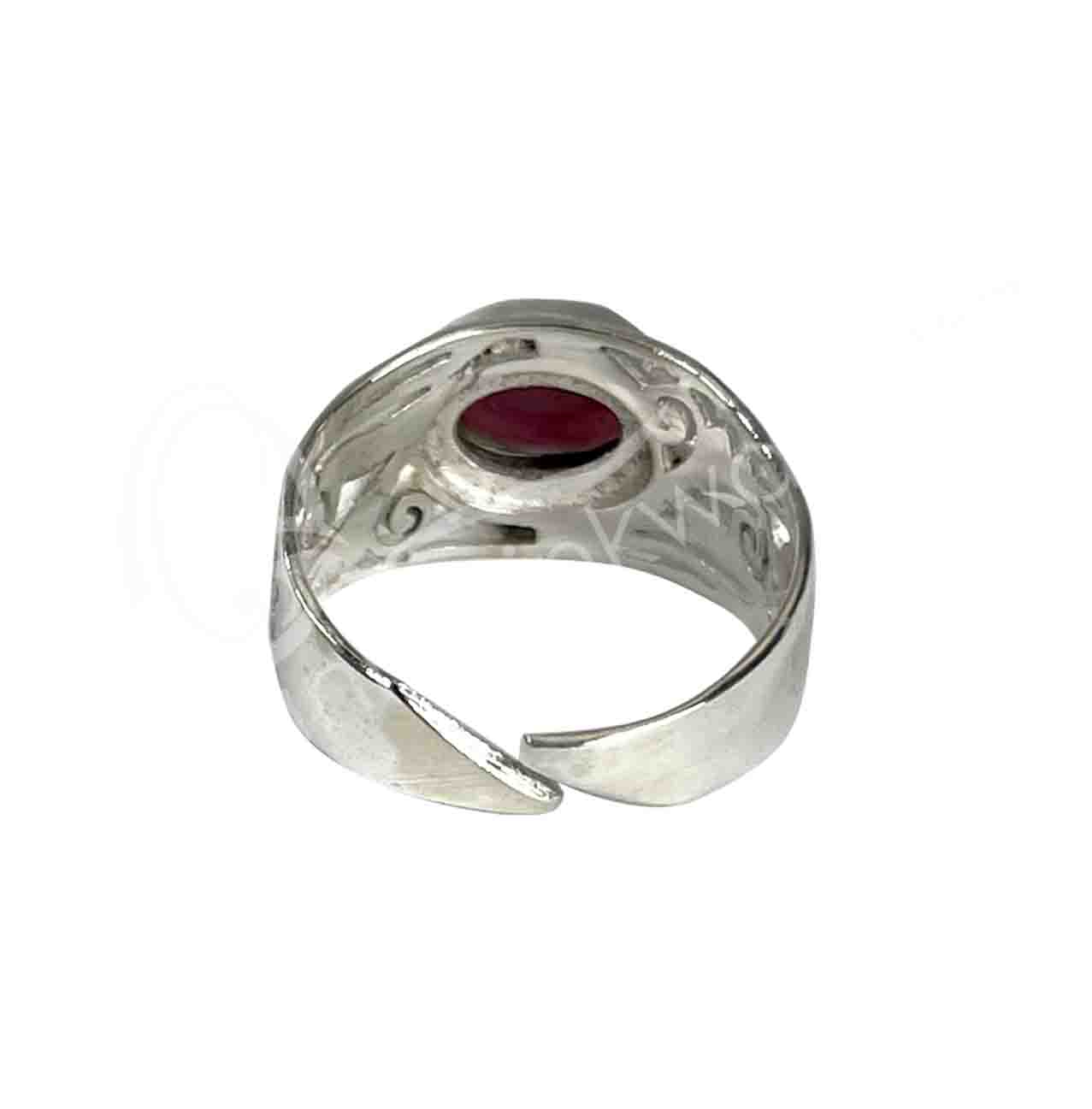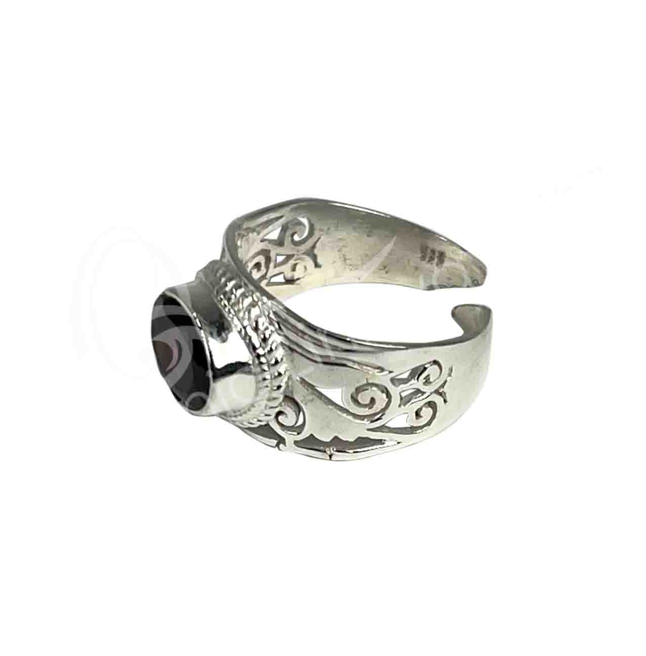 STERLING SILVER – RING, ADJUSTABLE OVAL JALI GARNET