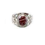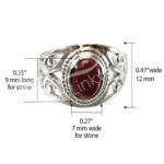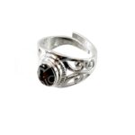 STERLING SILVER – RING, ADJUSTABLE BIG JALI OVAL GARNET 0.45″W