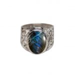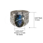 STERLING SILVER – RING BIG OVAL CABOCHON LABRADORITE ADJUSTABLE 0.5″W