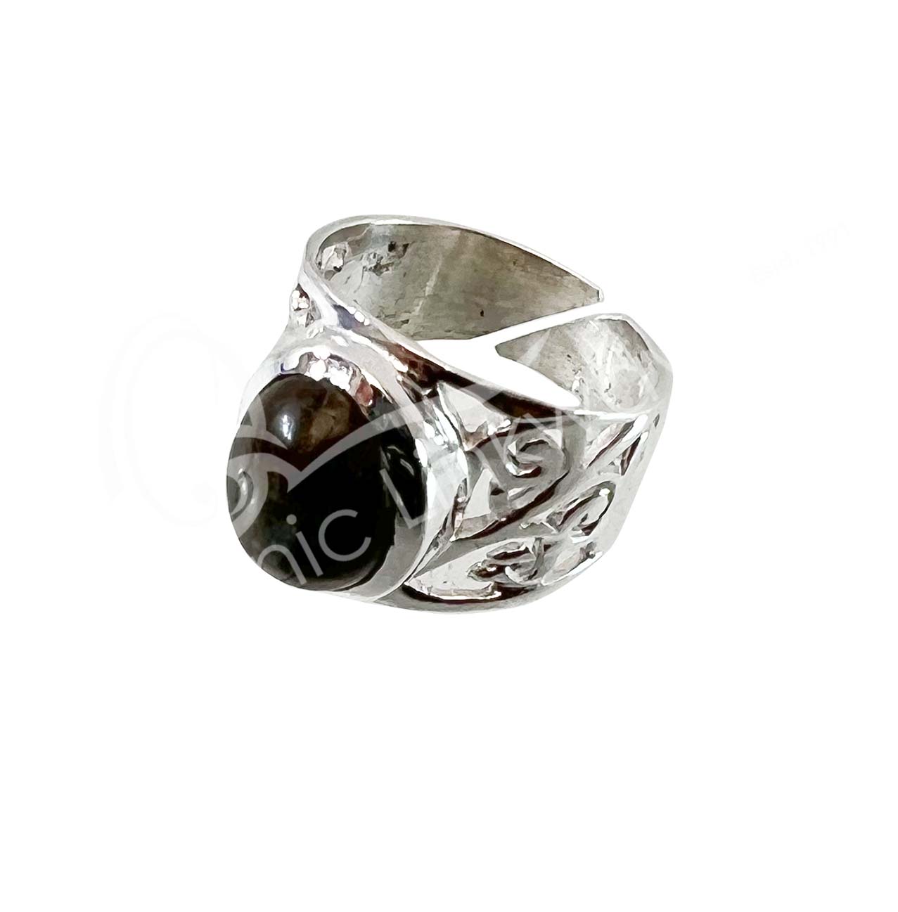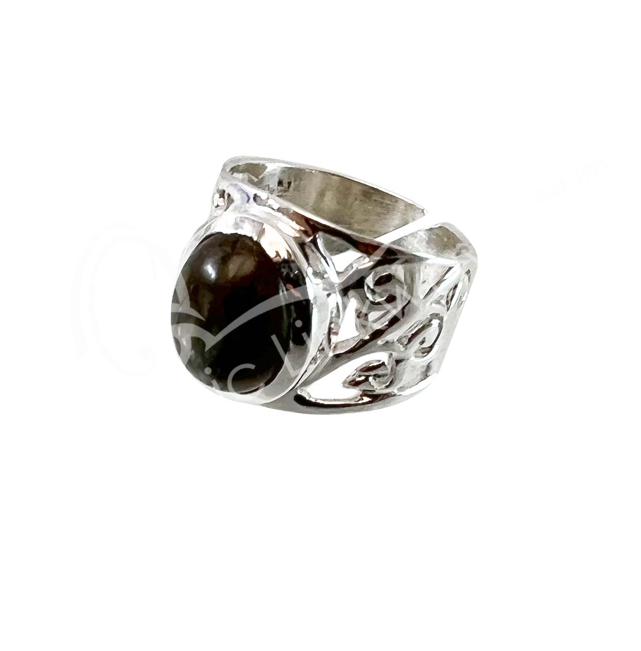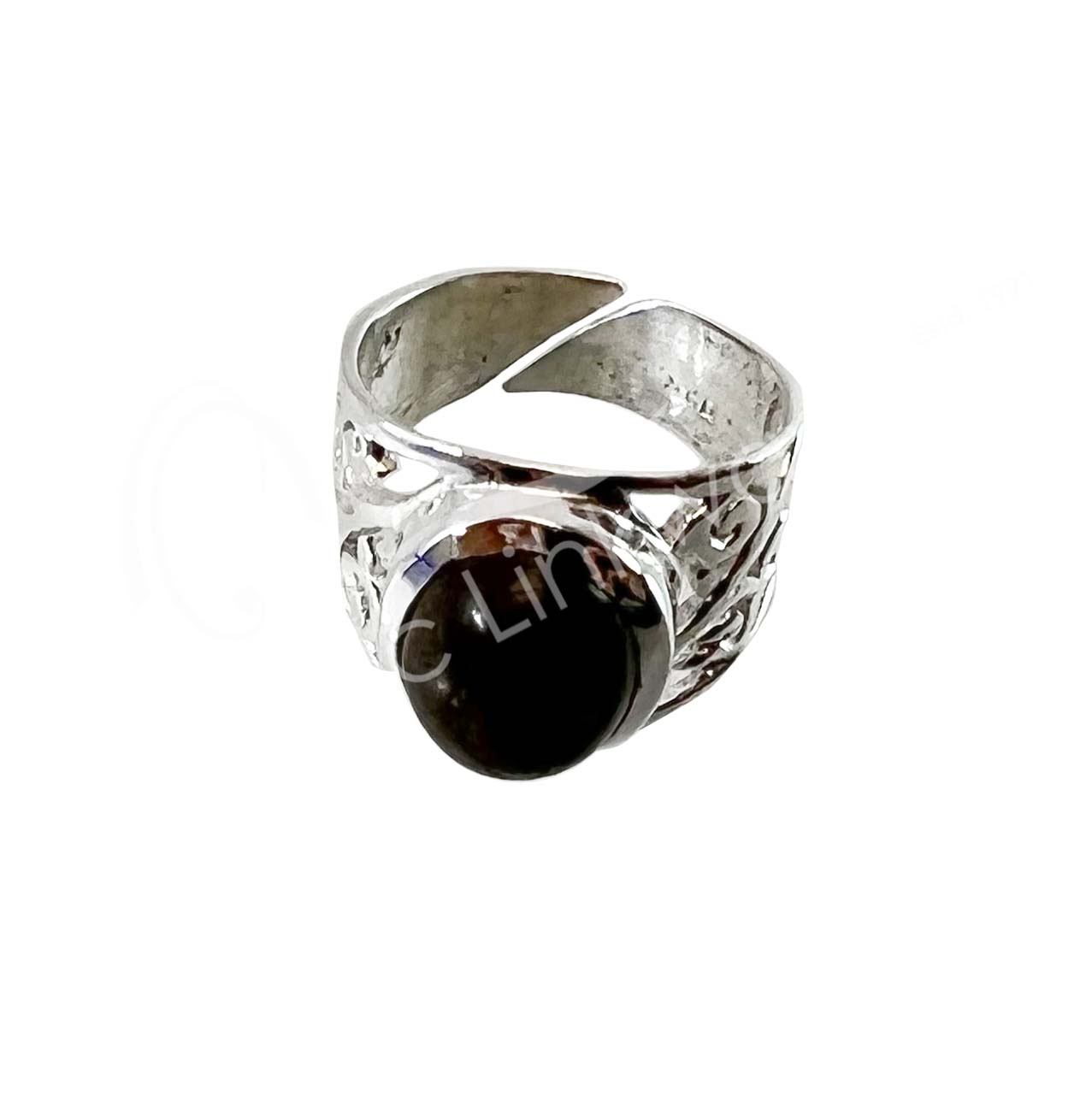 STERLING SILVER – RING, ADJUSTABLE BIG JALI OVAL LABRADORITE 0.45″W